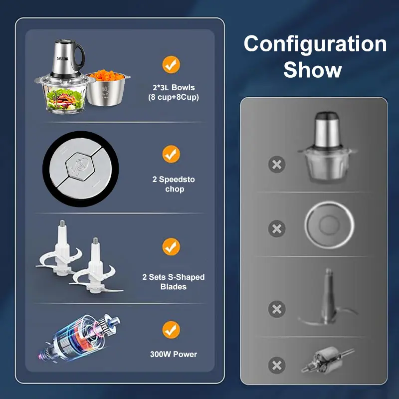 ·Multi-Functionality: Ideal for mincing, grinding, vegetables, meats, dough, salads, nuts, and fresh baby food.