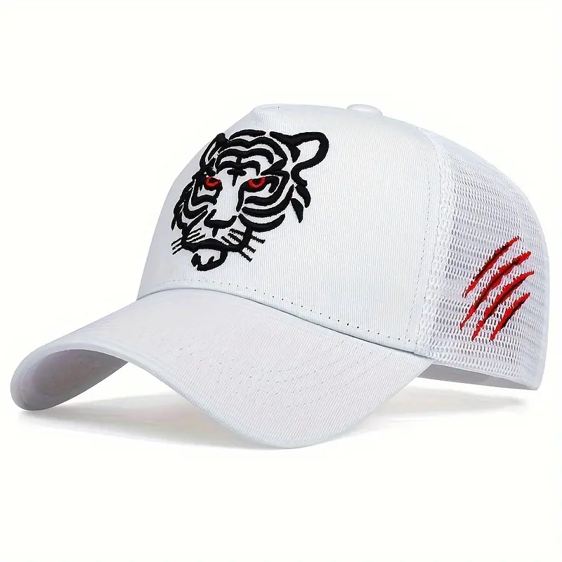 Unisex Tiger Head Embroidery Snapback Baseball Cap Mesh Hat Outdoor Sport Adjustable Sunscreen Leisure Hat Spring Autumn Travel Tourism Beach Vacation