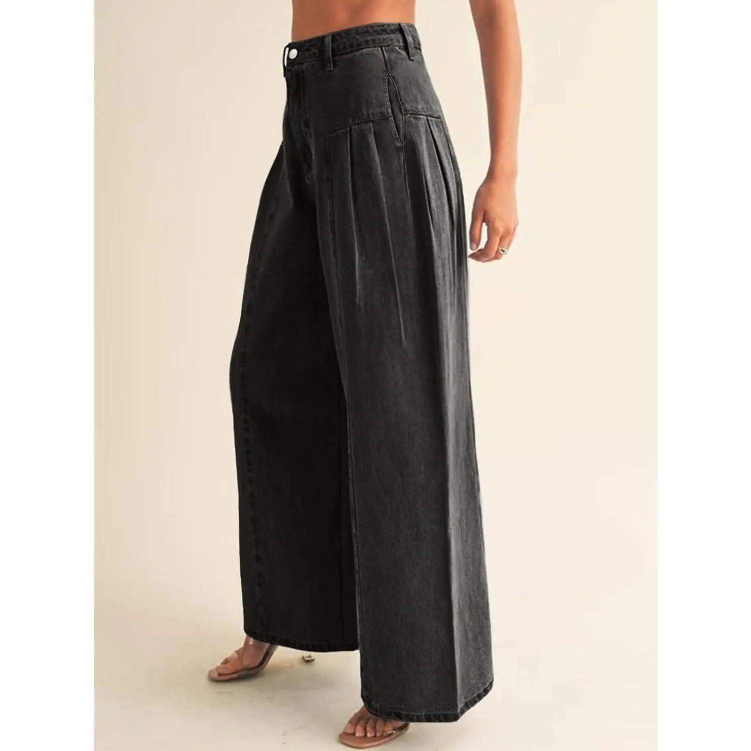 Women Baggy Side Pleated Jeans 90s Vintage Casual Denim Pants