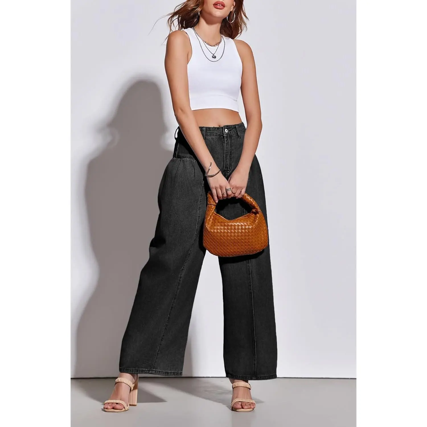 Yousify Womens Baggy High Waisted Jeans Loose Boyfriend Wide Leg Side Pleated Denim Pants. #fallfashion #wardrobeme #tiktokshopbacktoschool #laborday #baggyjeans