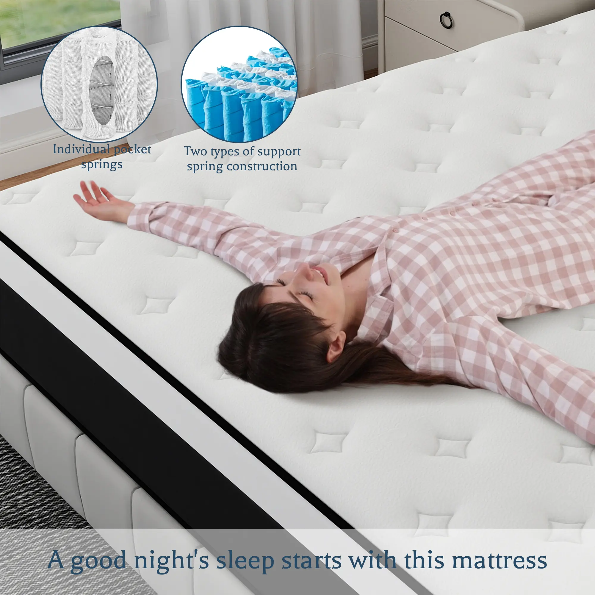 Unbeatable Comfort: Our Hybrid pocket spring memory foam mattress combines the best of both worlds. The pocket springs offer firm support, while the memory foam contours to your body, ensuring a cozy and restful sleep every night.