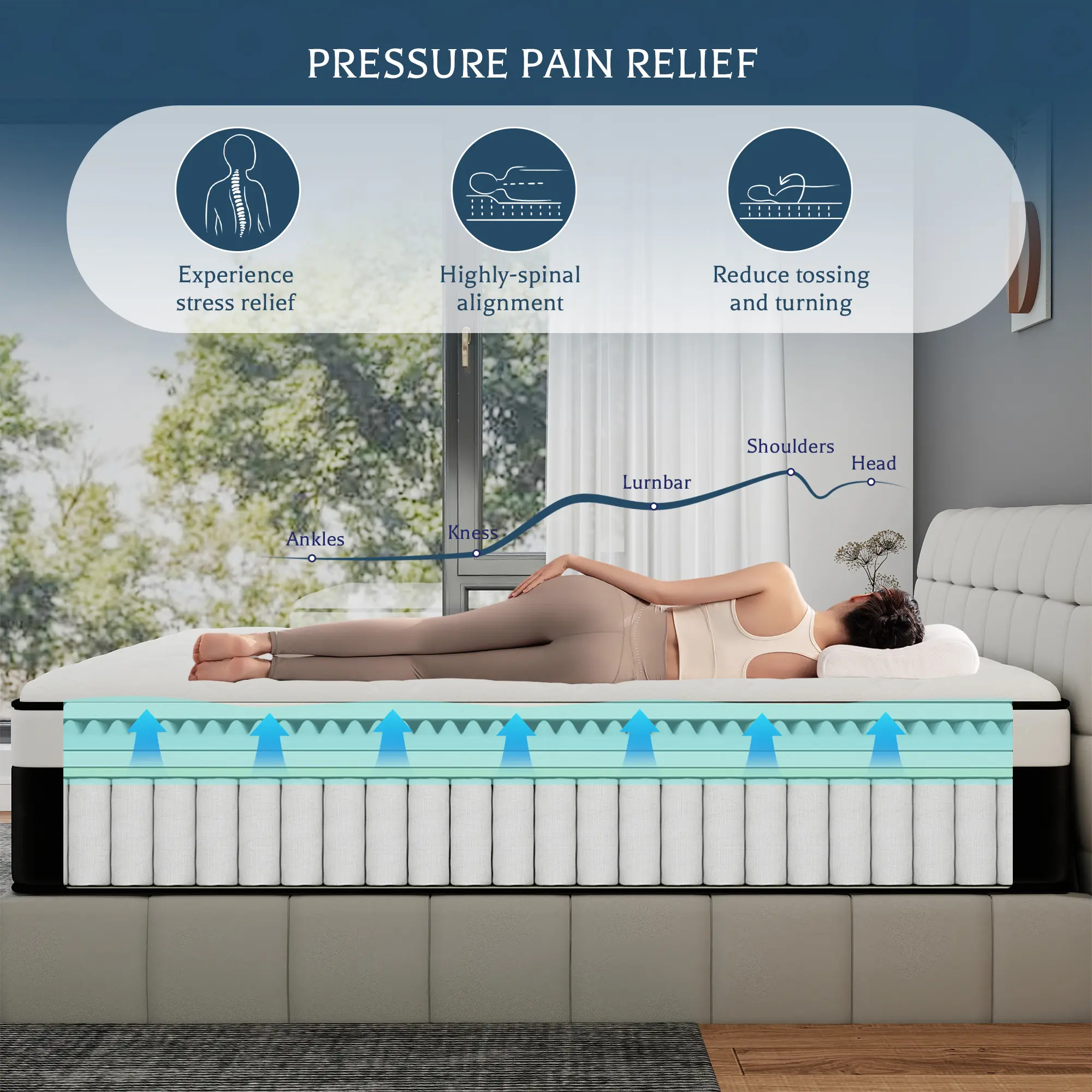 Optimal Support System: The pocket spring design distributes weight evenly, reducing pressure points and providing personalized support. Paired with the memory foam, it helps align your spine for a healthier sleeping posture.