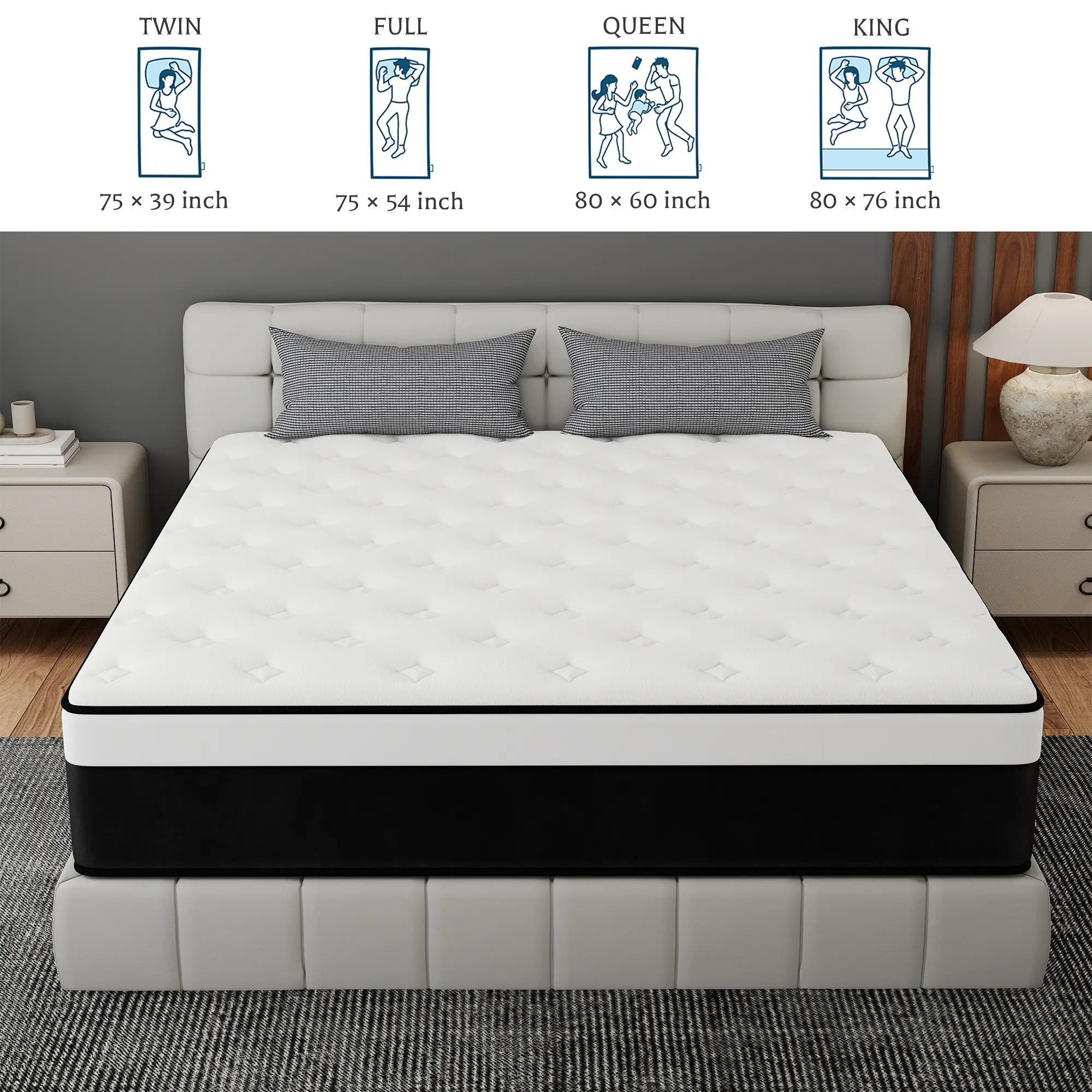King: 80 x 76 x 12 Inch / 100 lb