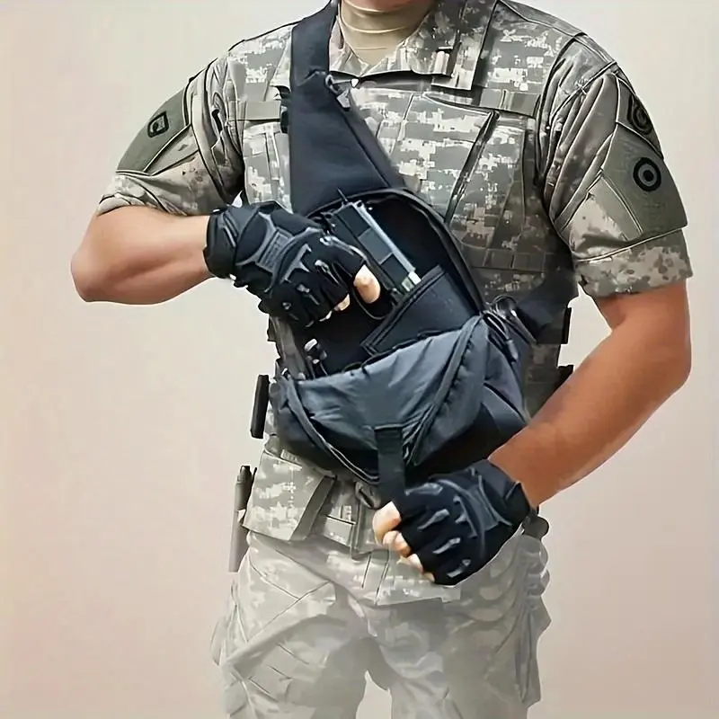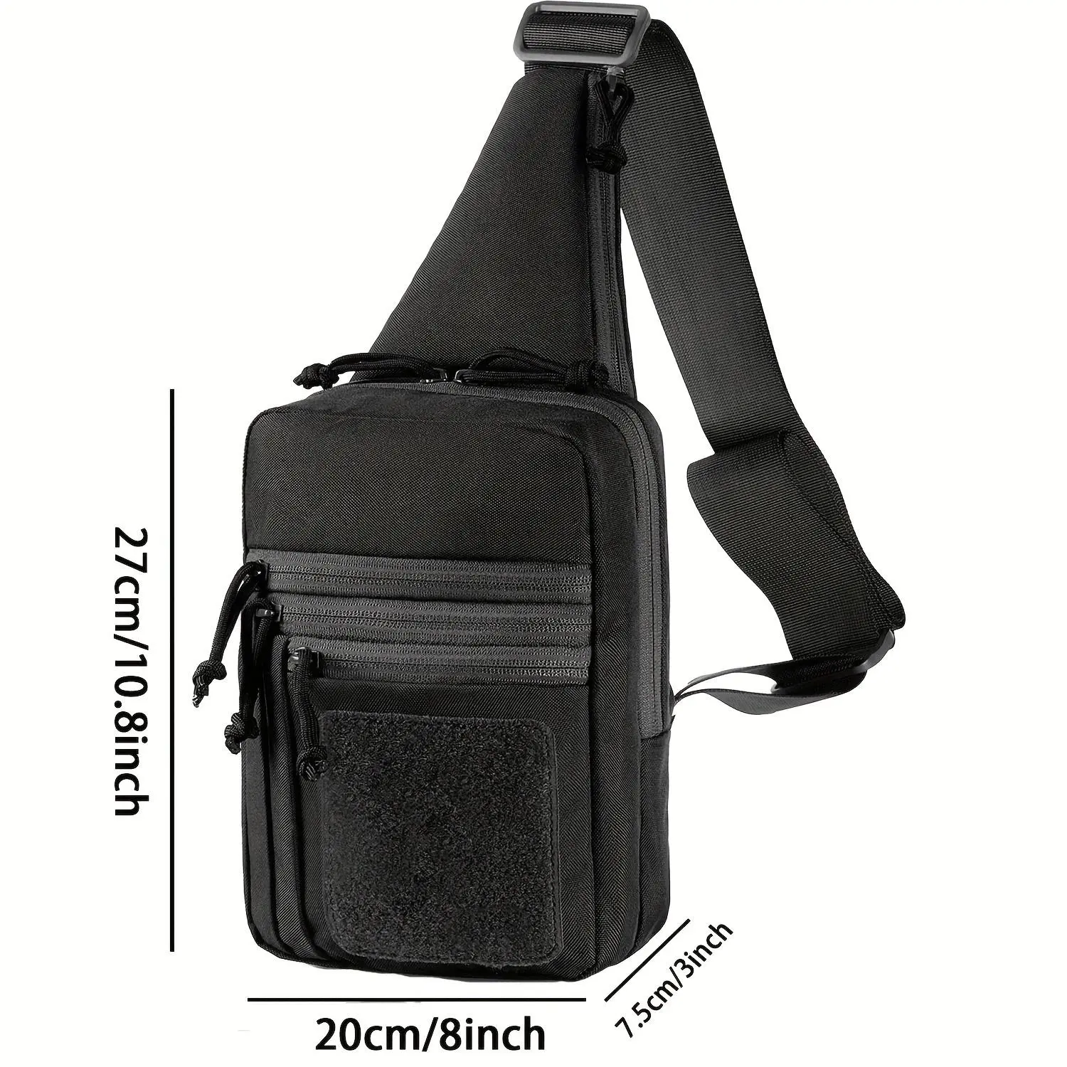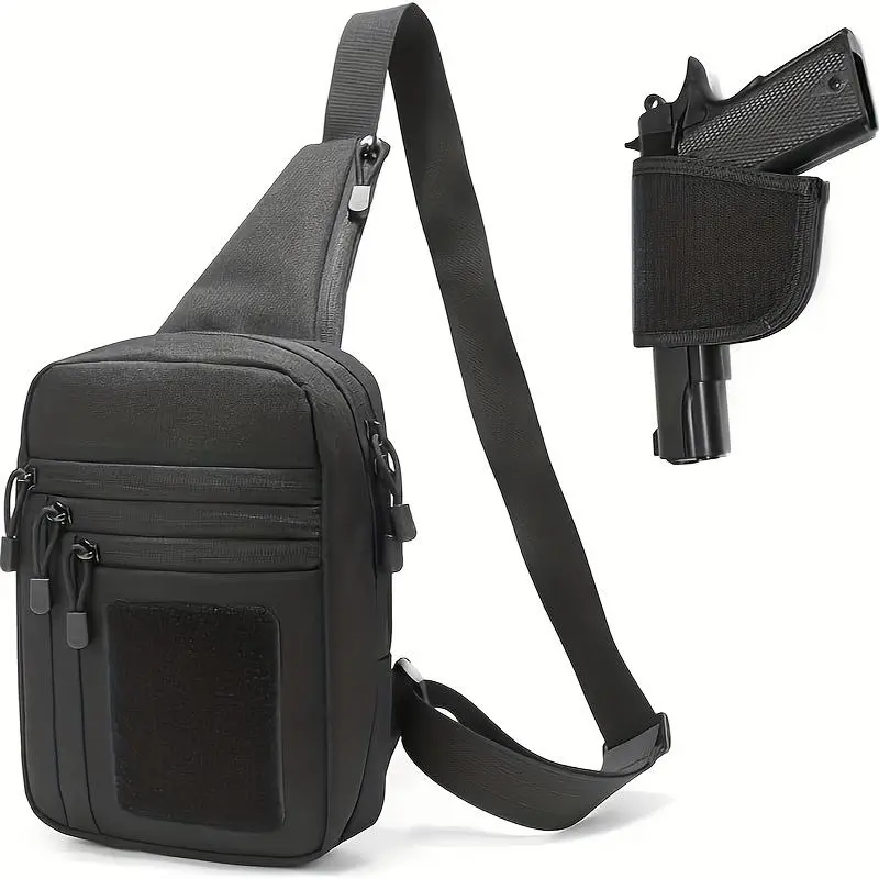 Men's Black Concealed Carry Holster Sling Bag, Small Pistol Backpack Chest Backpack, Travel, Sports, Walking Crossbody Shoulder Bag-Nylon Strap Zipper Closure