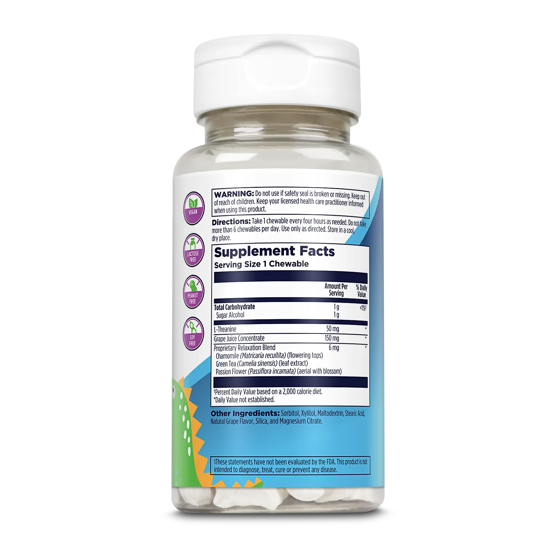 While kids love our tasty, dinosaur-shaped chewables made with real Grape Juice Concentrate, parents love that Relax-a-Saurus chewables are sweetened with xylitol so they're healthy for teeth!