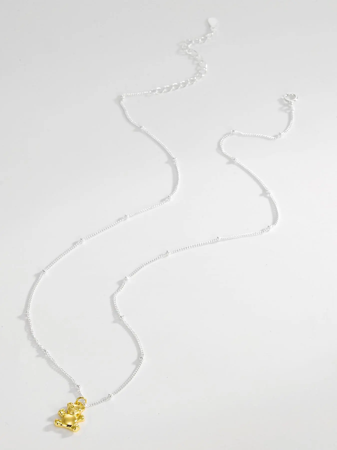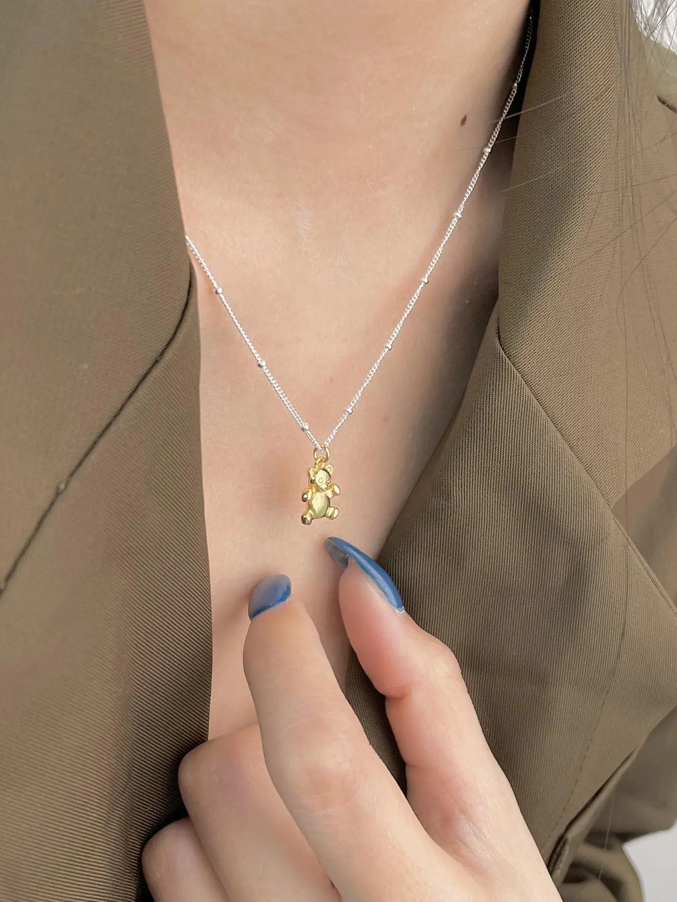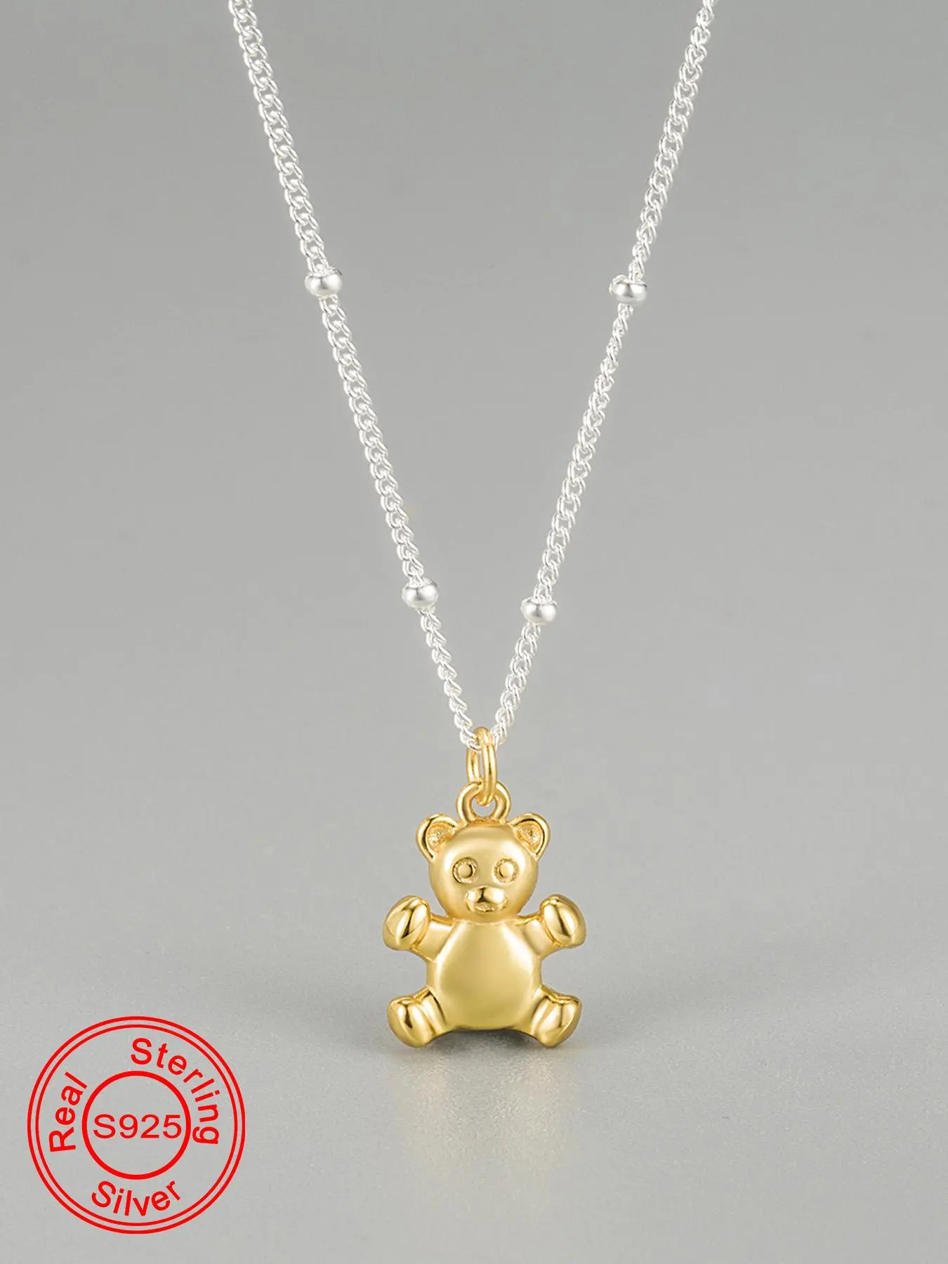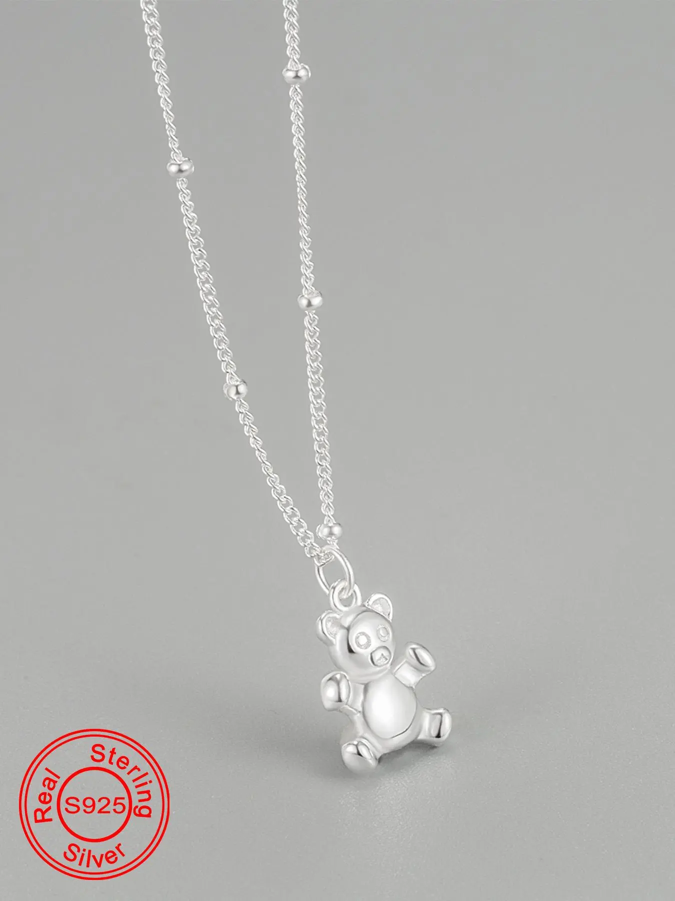 5. S925 Sterling Silver Cute Cartoon Bear Pendant Necklace, Fashion Jewelry for Party, Daily Clothing Decor, Trendy All-match & Exquisite Jewelry for Birthday Gift