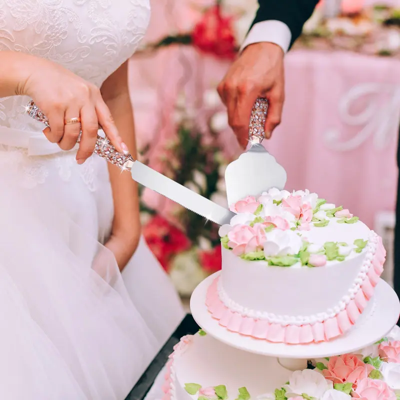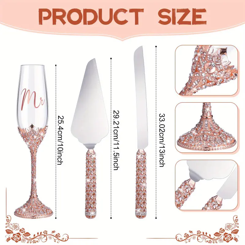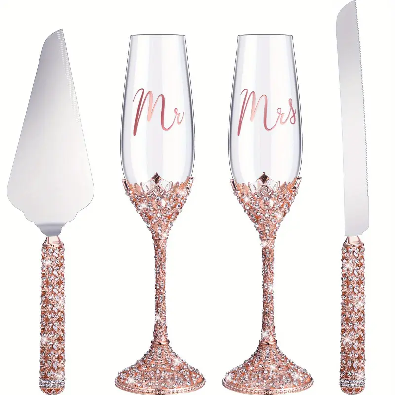 4 Pcs, Wedding Cake Knife And Champagne Flutes Server Set, Wedding Cake Knife And Server Set, Toasting Crystal Rhinestone Champagne Flutes Glasses Cake Knife Pie Server Wedding Gifts For Couple Bride Groom, Christmas Gift, i Cutlery Tableware