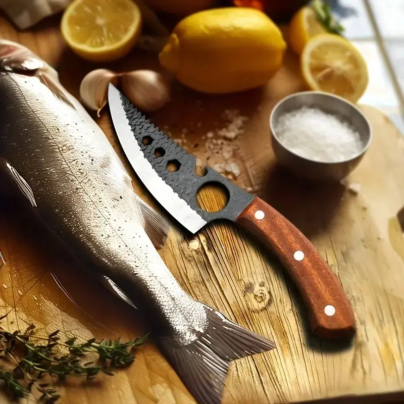 5. Kitchen knife boning knife, butcher knife, stainless steel handmade blade forged chef, forged, wooden handle, with gift box wooden steel