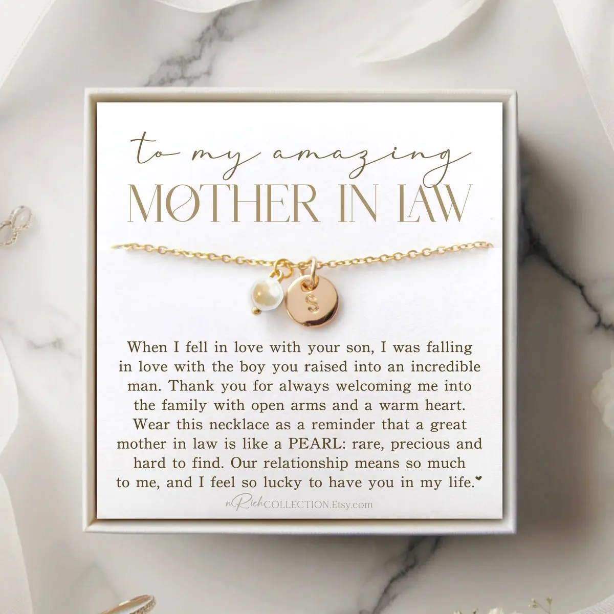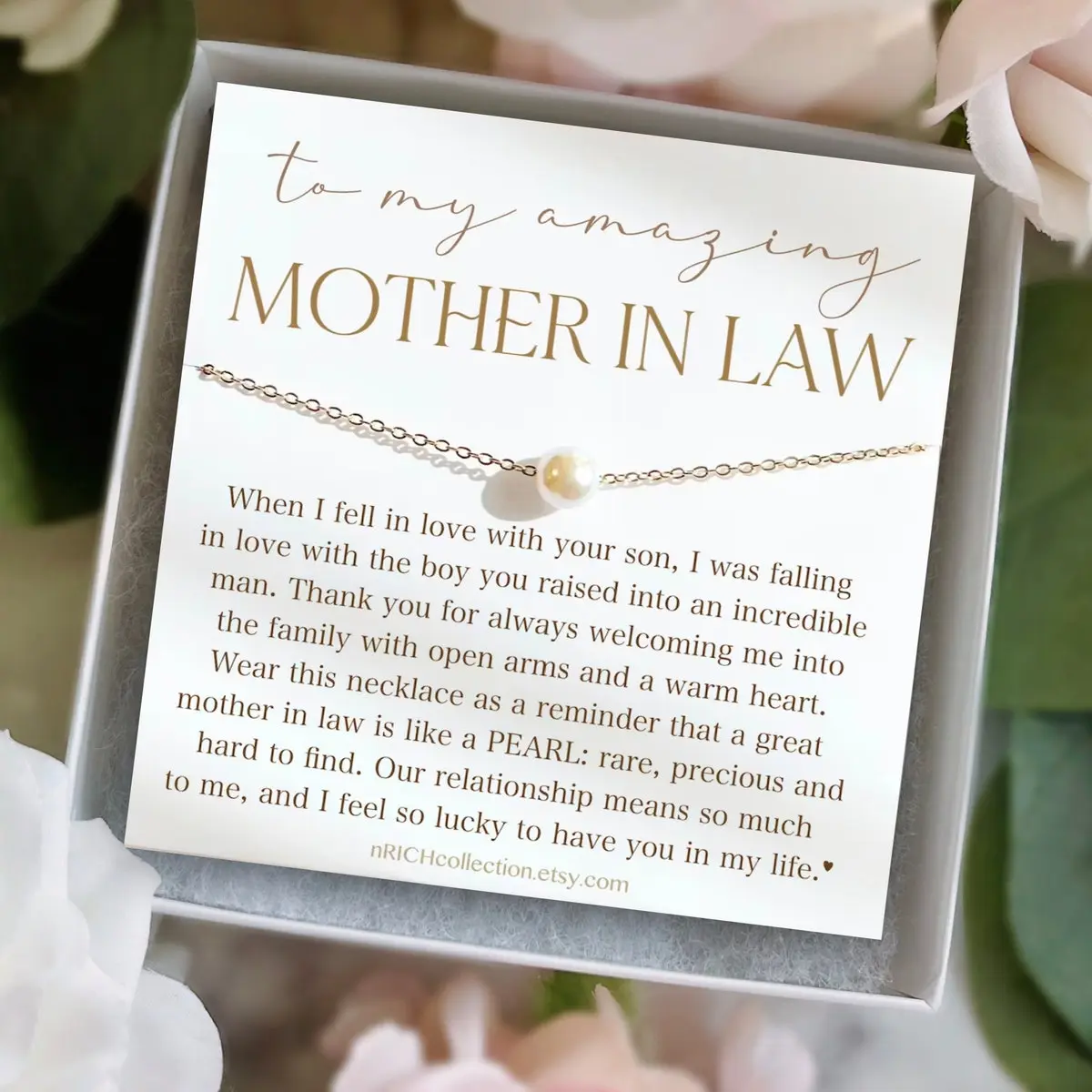 Mother In Law, Necklace Gifts, Jewelry Gifst, Rose Gold Silver, Pearl Necklace, for Mother in Law, Gift on Wedding Day, Birthday Gift, for Mom in Law, Christmas Gifts, Gift from Bride, from Daughter in Law, Mother's Day Gift
