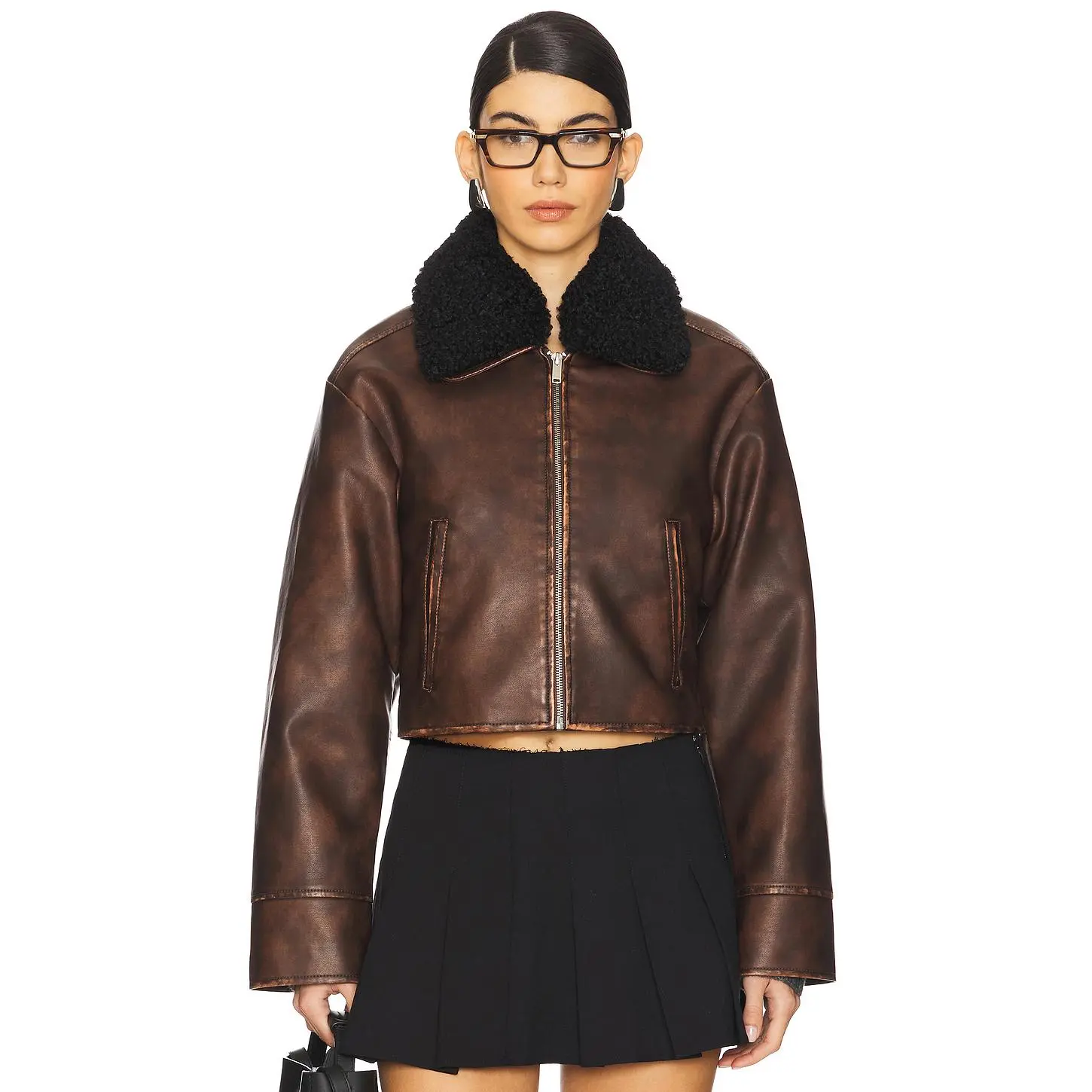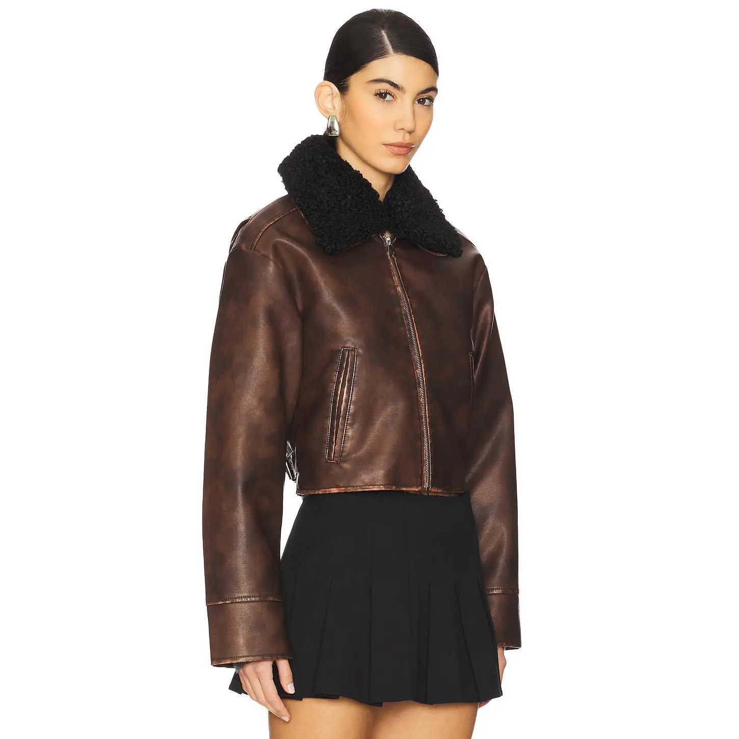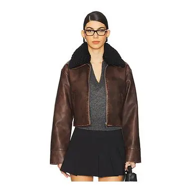 MORE TO COME Lexi Faux Leather Jacket in Distressed Brown