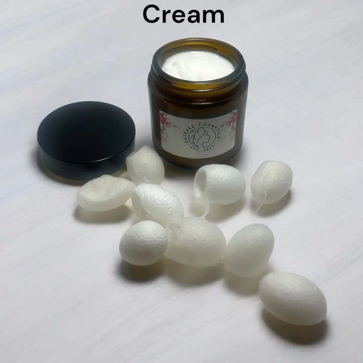 Introducing our Silk Cocoon Moisturizer Cream, a luxurious skincare product that provides intense hydration and nourishment to the skin. Enriched with shea butter, sweet almond oil, Lanette wax, vitamin E, Hyaluronic acid, germaben II, silk cocoon, and honeysuckle essential oil, this cream is designed to keep your skin looking and feeling its best.