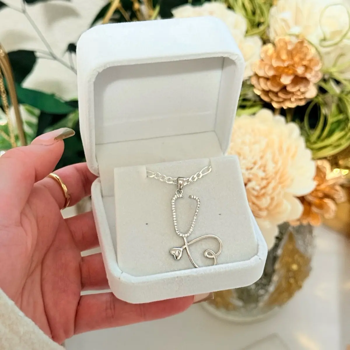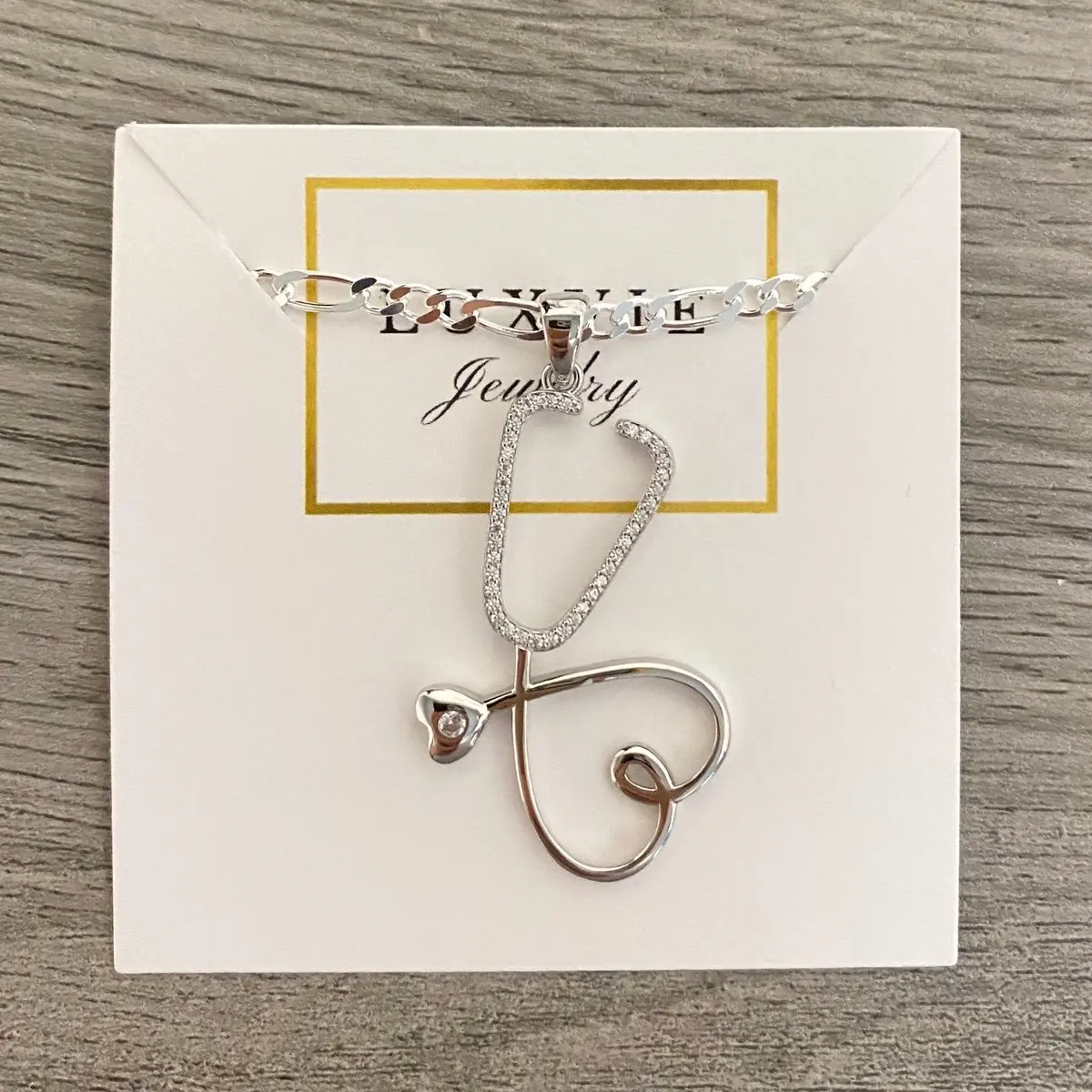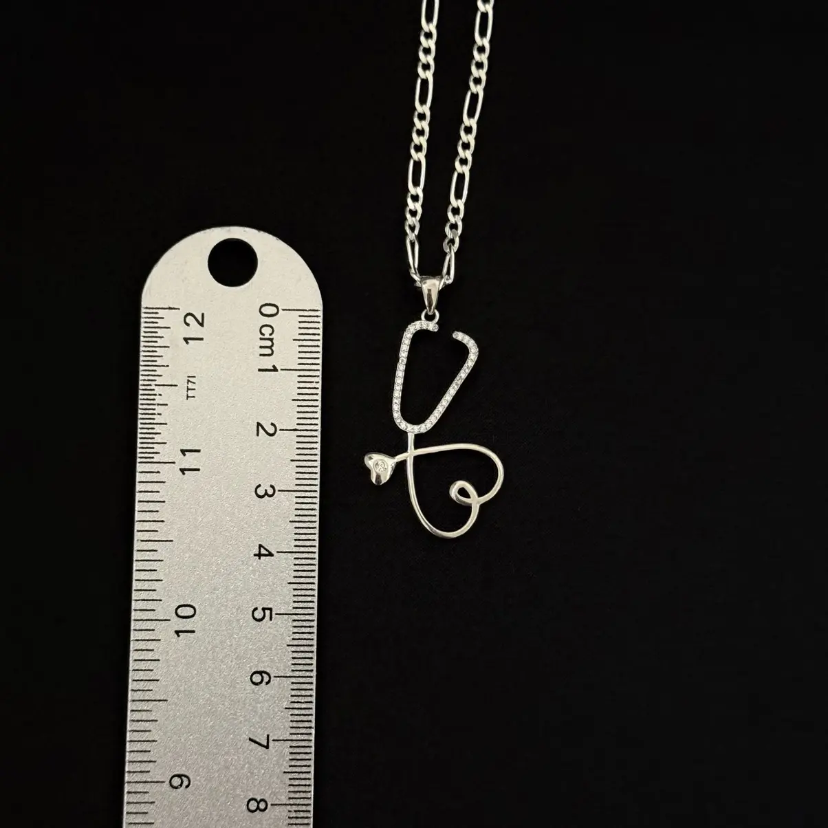925 Silver Stethoscope Necklace with 3MM Figaro Chain