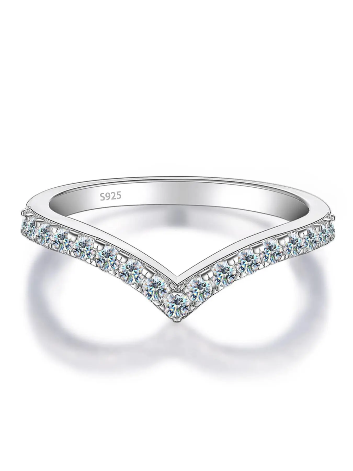 S925 Sterling Silver Synthetic Moissanite V-shaped Engagement Ring, Moissanite Rings, Fashion Accessories for Women, Trendy All-match & Exquisite Jewelry for Birthday Gift