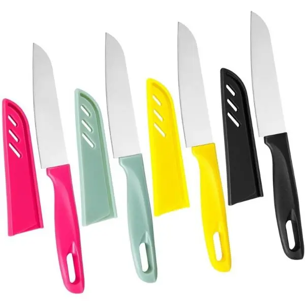 I was worried these would not be good but I gave them a shot and I’m so glad I did. The colors are fantastic, the sheath is great for keeping people safe when handling, and the blades are great. They slice right through anything so definitely perfect for the kitchen.