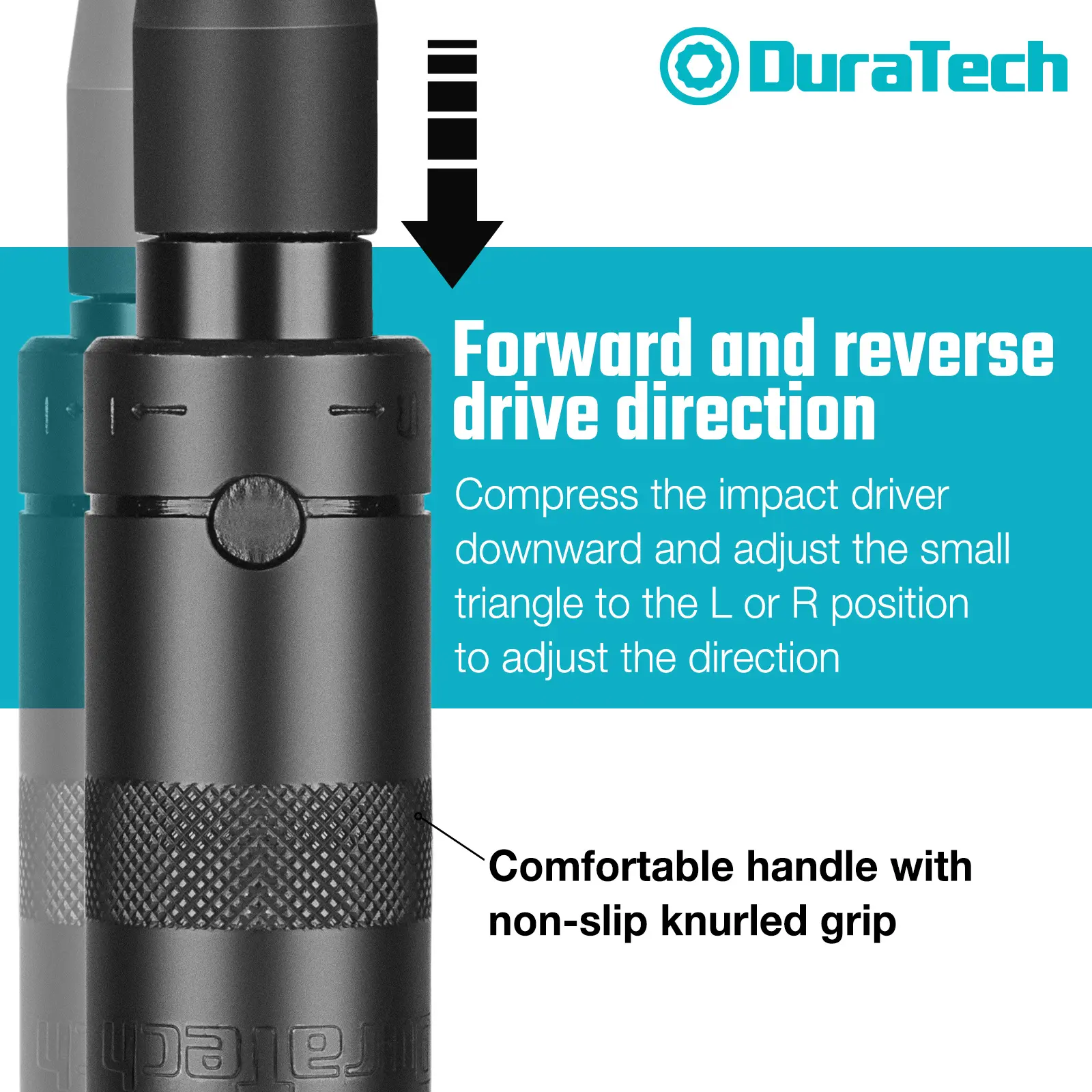 ·𝐃𝐢𝐫𝐞𝐜𝐭𝐢𝐨𝐧 𝐒𝐞𝐭𝐭𝐢𝐧𝐠𝐬: Press down to adjust the setting direction. When the setting is configured to "L", the screwdriver will rotate clockwise to tighten the screw. To loosen the screw, switch the setting to "R", which will allow the screwdriver to rotate counterclockwise