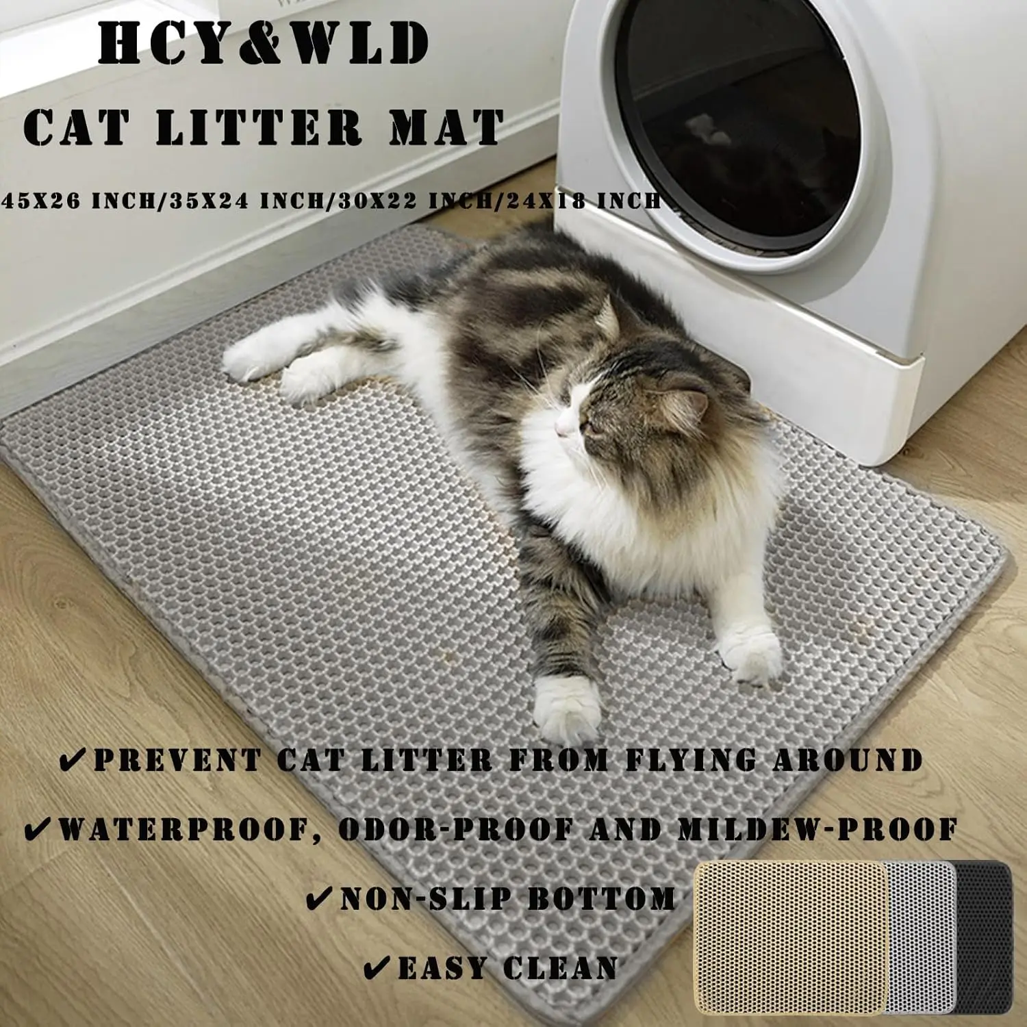 Use HCY & WLD cat litter mats for a tidy home. Cats and owners are happy! It's ideal for cats resting. Cat claws are easy to grab, perfect for stress relief. Available in 4 sizes: 45x26, 35x24, 30x22, 24x18 inches. Choose the right fit for your cat's litter box.