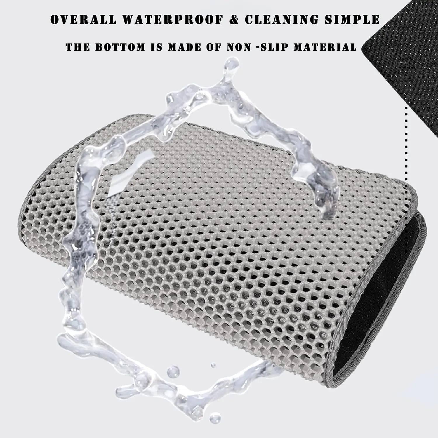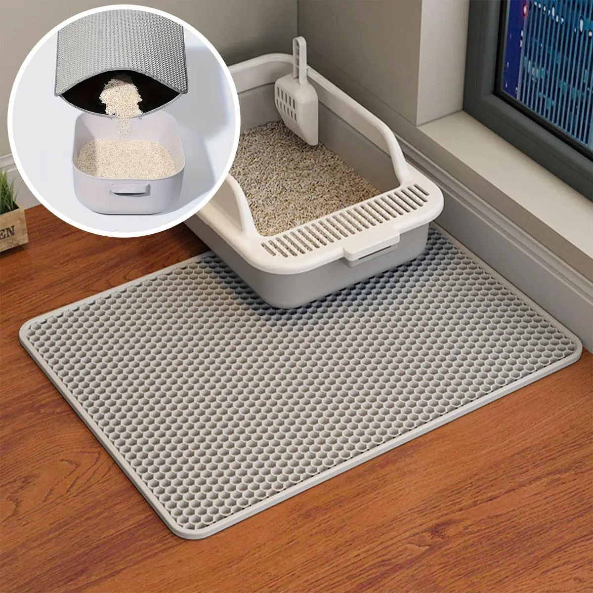 Made of EVA material, it's safe, odorless, light, durable, soft, and comfortable. Cats can rest comfortably. The large-diameter grid design allows easy collection of cat litter. When litter falls, it stays on the uneven surface, keeping the room clean.