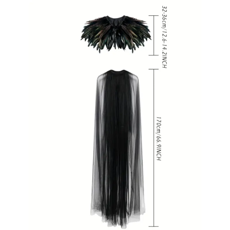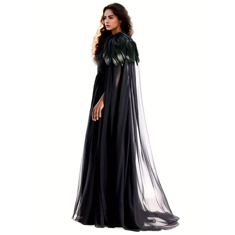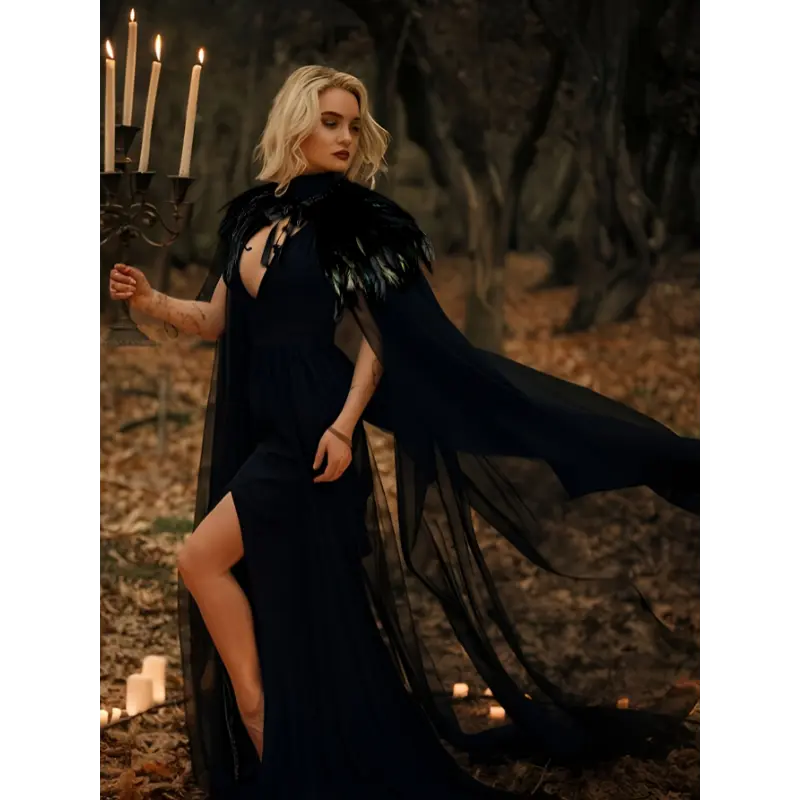 Evil Queen Vampire Witch Cosplay Costume - Women's Feather Collar Cloak Cape - Medieval Dark Princess Halloween Costume for Women Womenswear Clothing