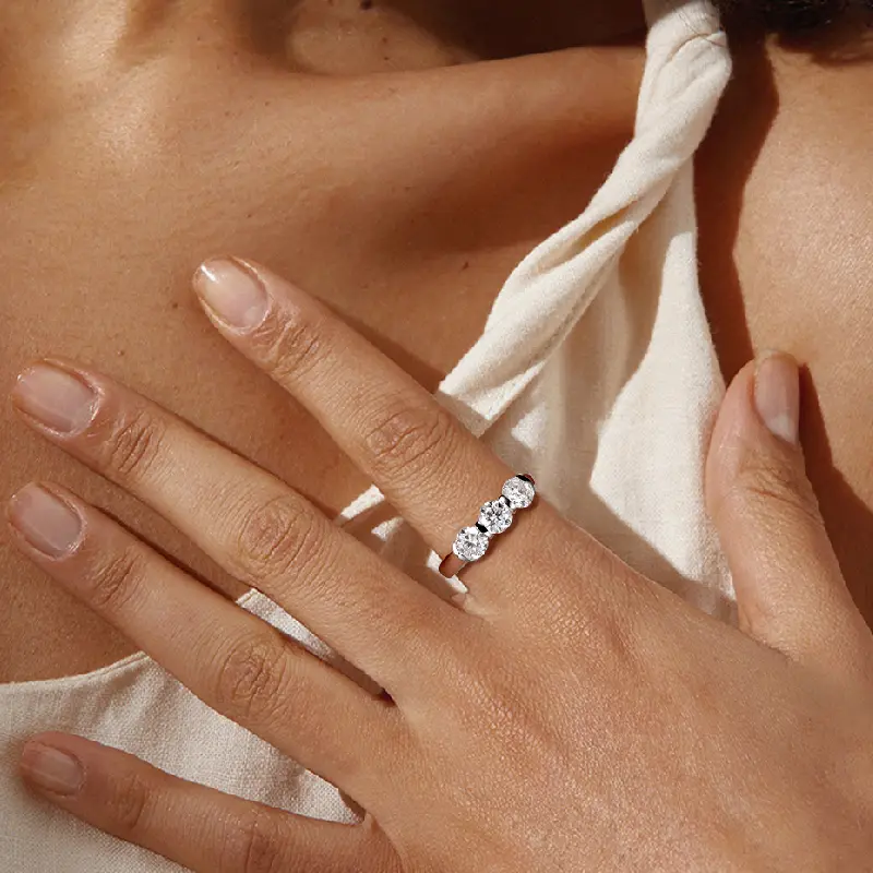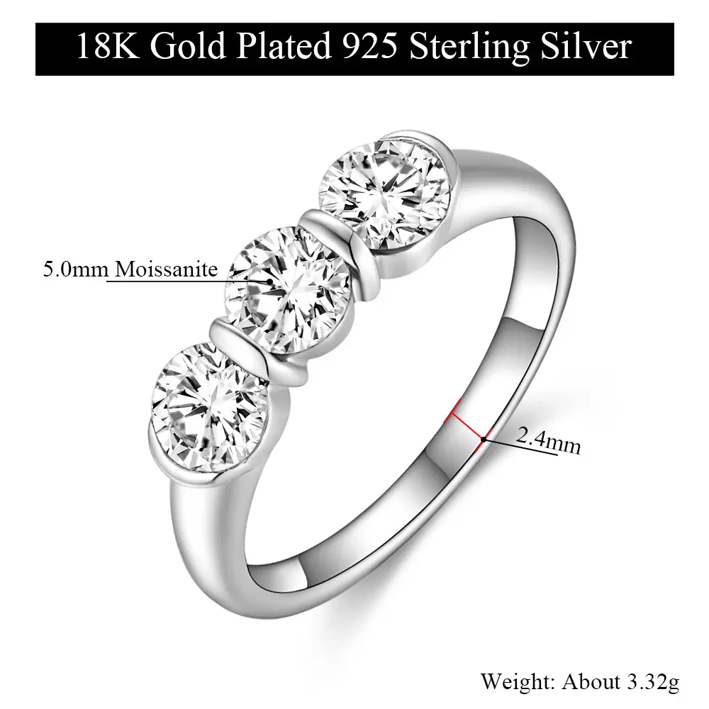 Moi Mart Classic Elegance 3-Stone Synthetic Moissanite Ring in s925 Sterling Silver, Perfect for Anniversaries or Engagement gift