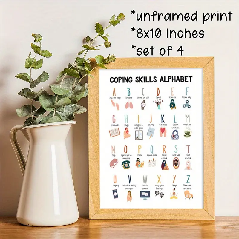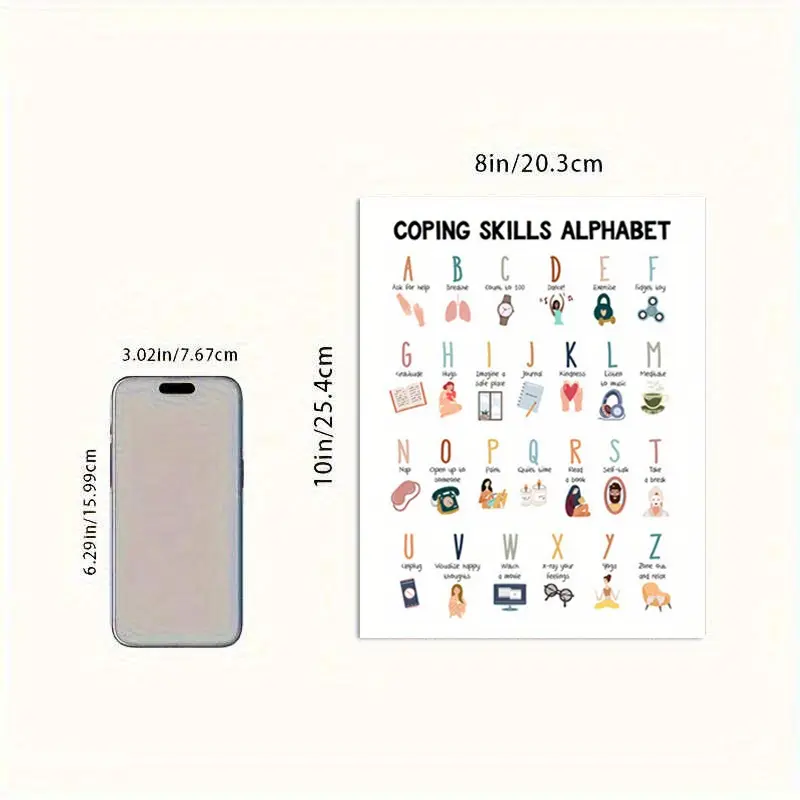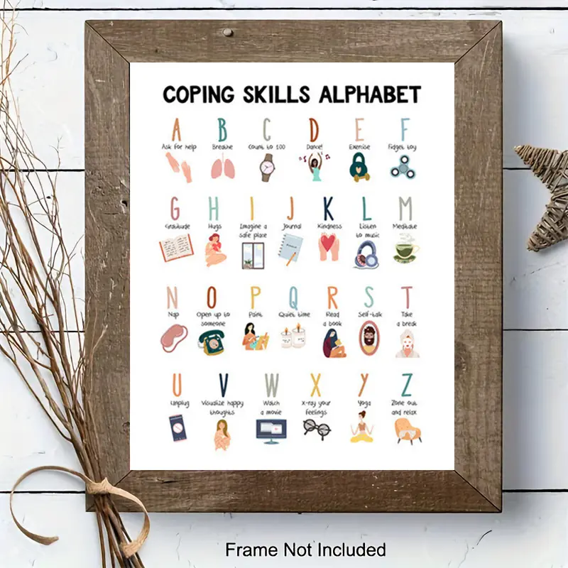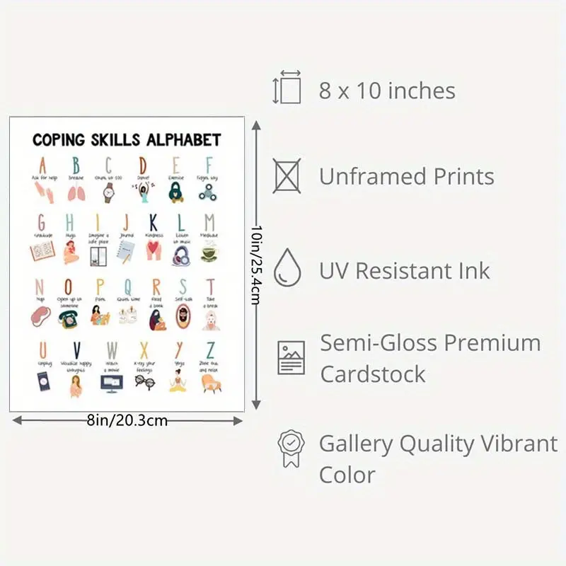 Mindfulness & Self-Care Alphabet Poster - 8x10" Frameless Wall Art for Calm Down Corner, Mental Health Awareness, School Counselor Office Decor, Perfect for Room Decor