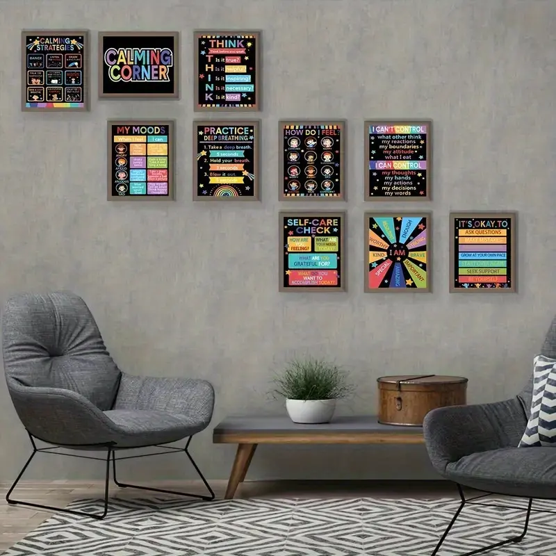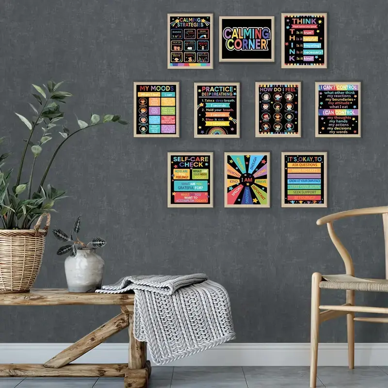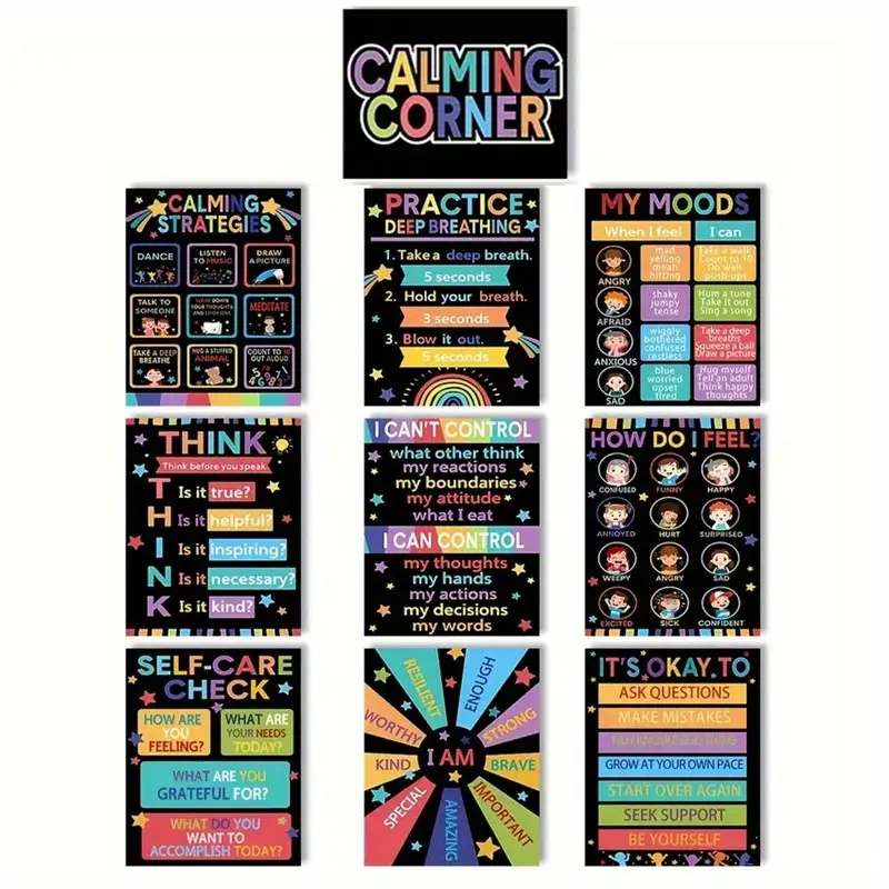 10pcs Classroom Calming Posters Set - Emotion Management & Feelings Chart, Educational Wall Decor for Preschool to Elementary Schools, 8x10 Inches, Unframed, Classroom Decorations for Teachers, Perfect for Room Decor