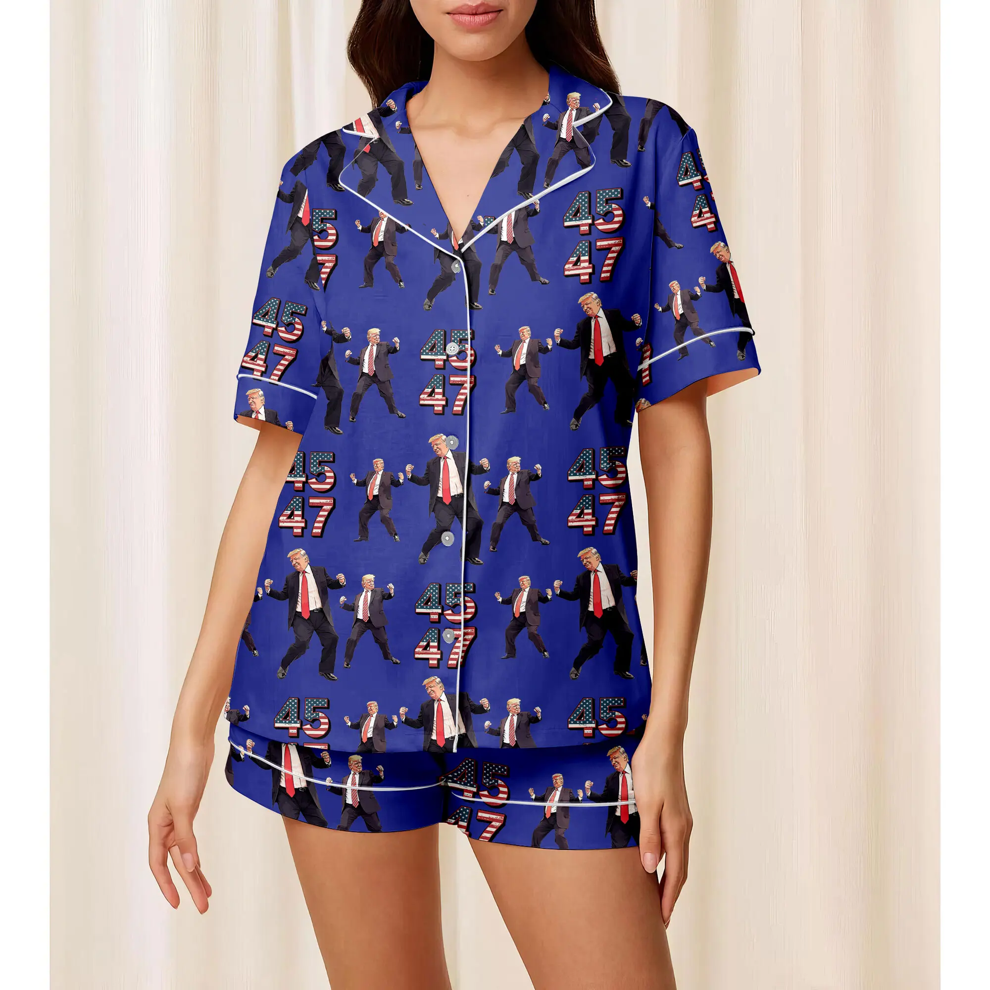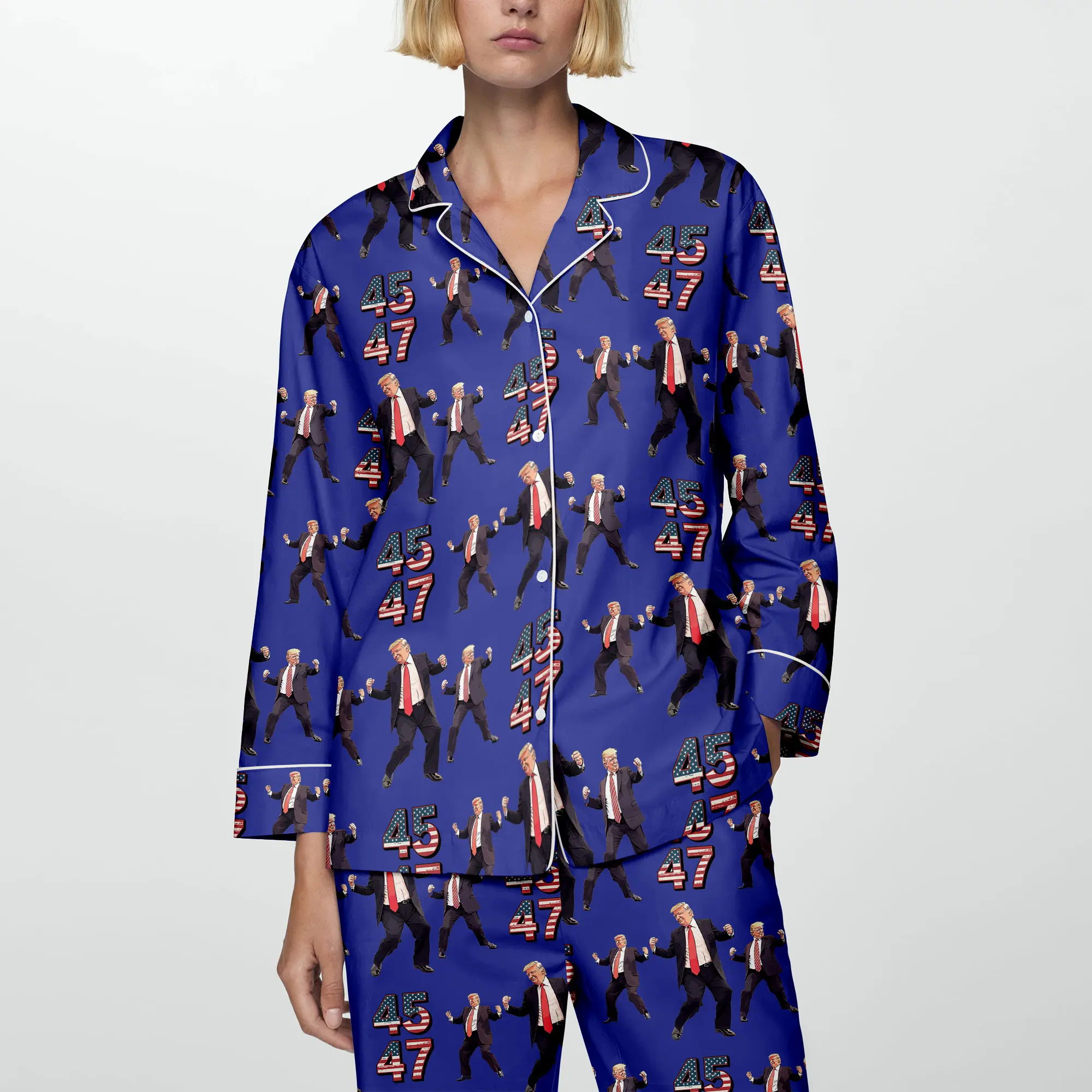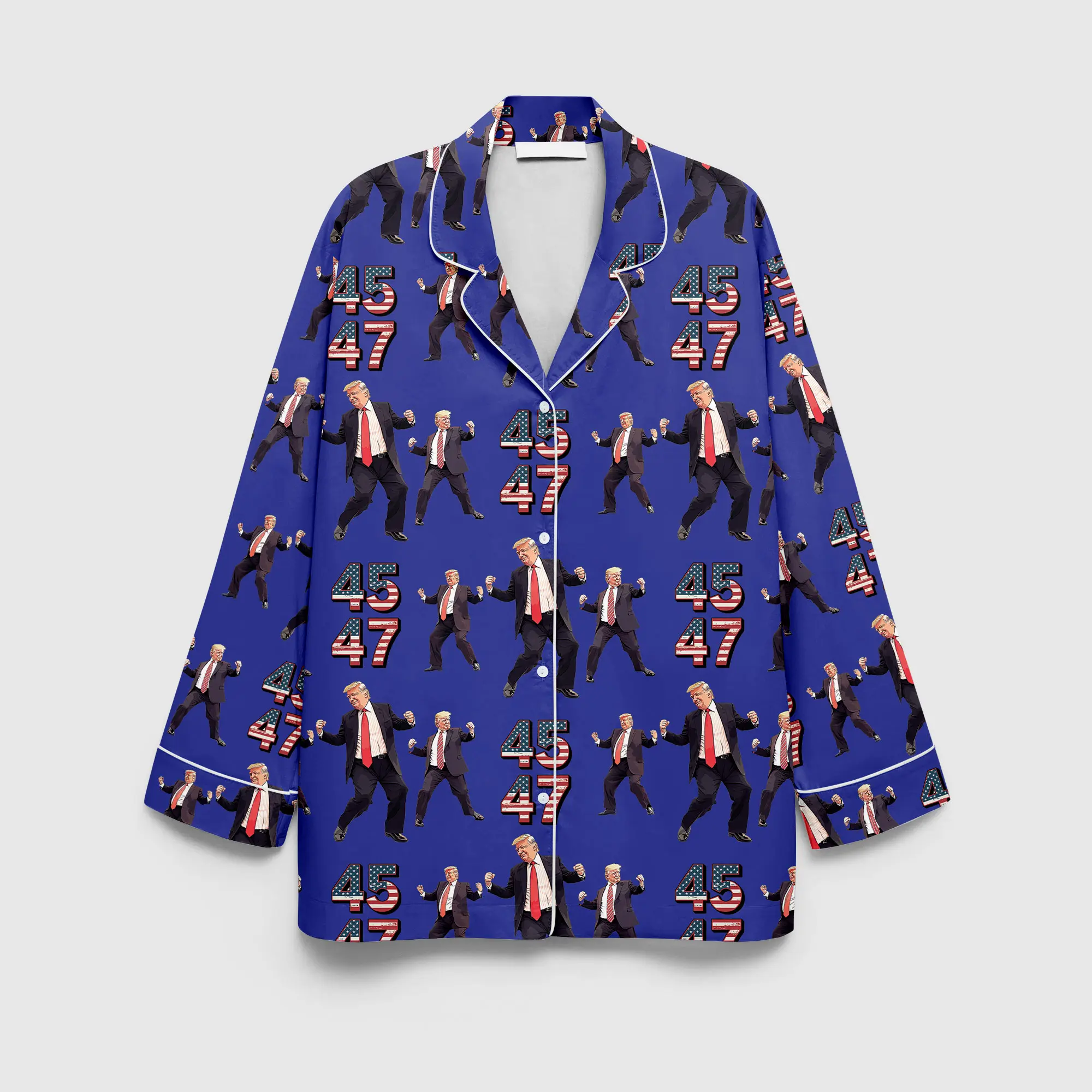 Trump 45 47 President Sleepwear, Cozy Holiday Wear, Trump Dancing Unisex Pajamas Pants, Trump Family Sleepwear, Dancing Trump Pajamas Set