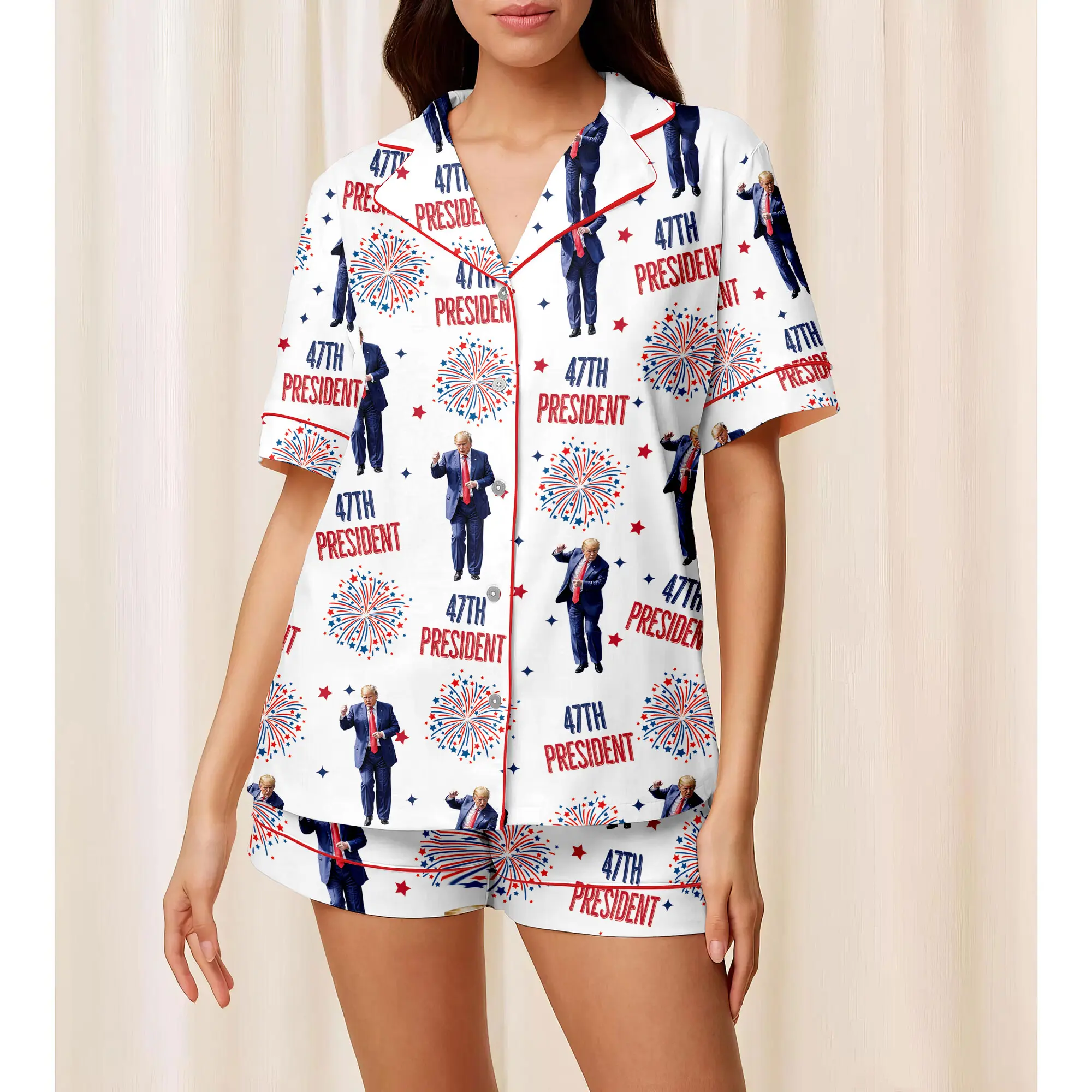 Trump 45 47 President Sleepwear, Cozy Holiday Wear, Trump Family Sleepwear, Dancing Trump Pajamas Set