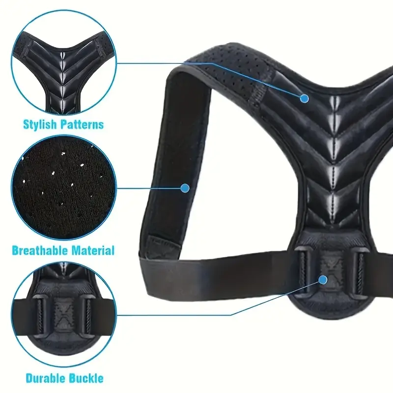 Posture Corrector Vest with Adjustable Straps - Comfortable Back Support Brace for Improved Daily Posture, Breathable Polyester & Nylon Blend, Sports Style
