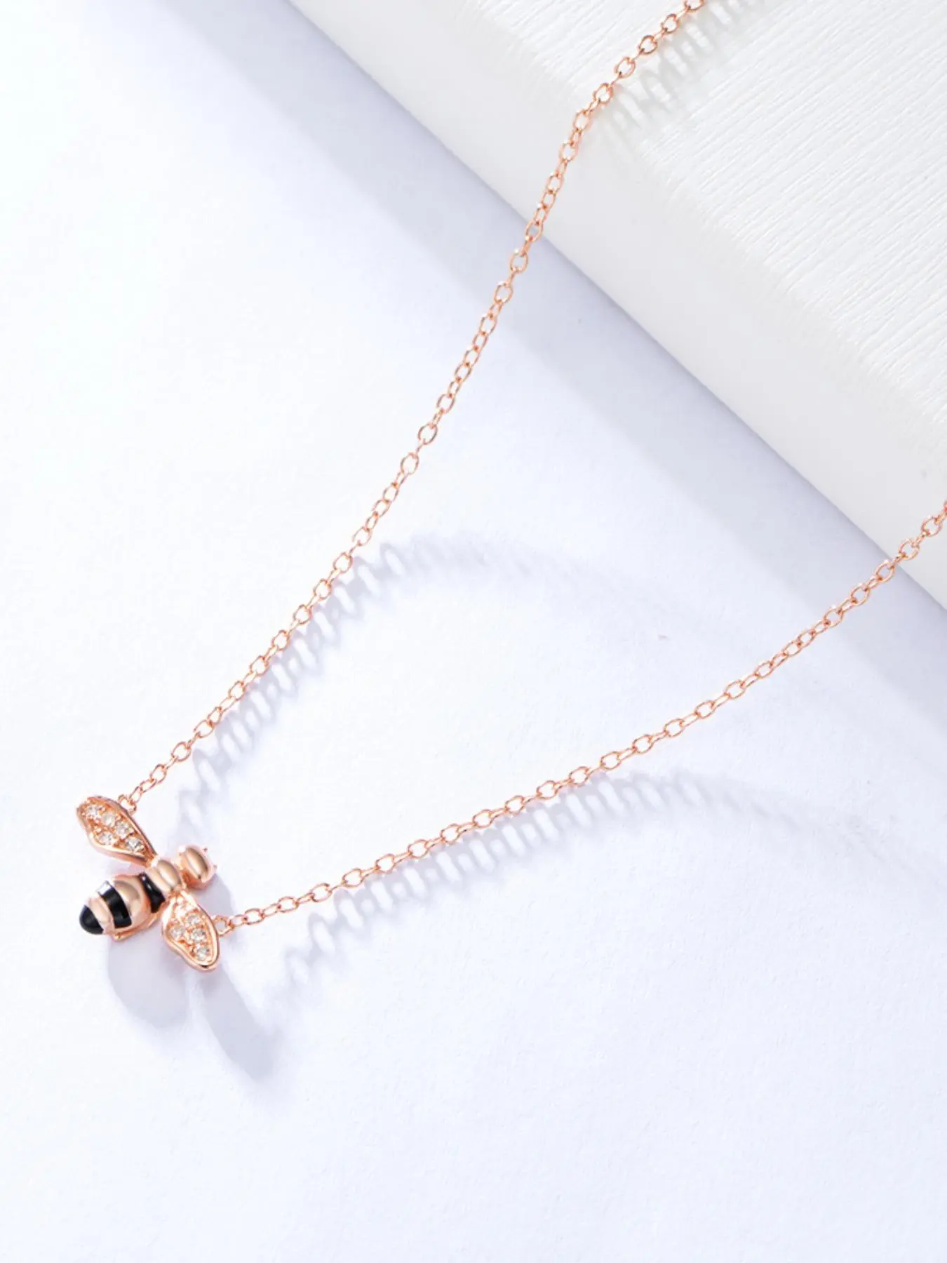 925 Sterling Silver Cute Bee Design Pendant Necklace, Artificial Zircon Decor Necklace, Fashion Jewelry Accessories for Women As Gift
