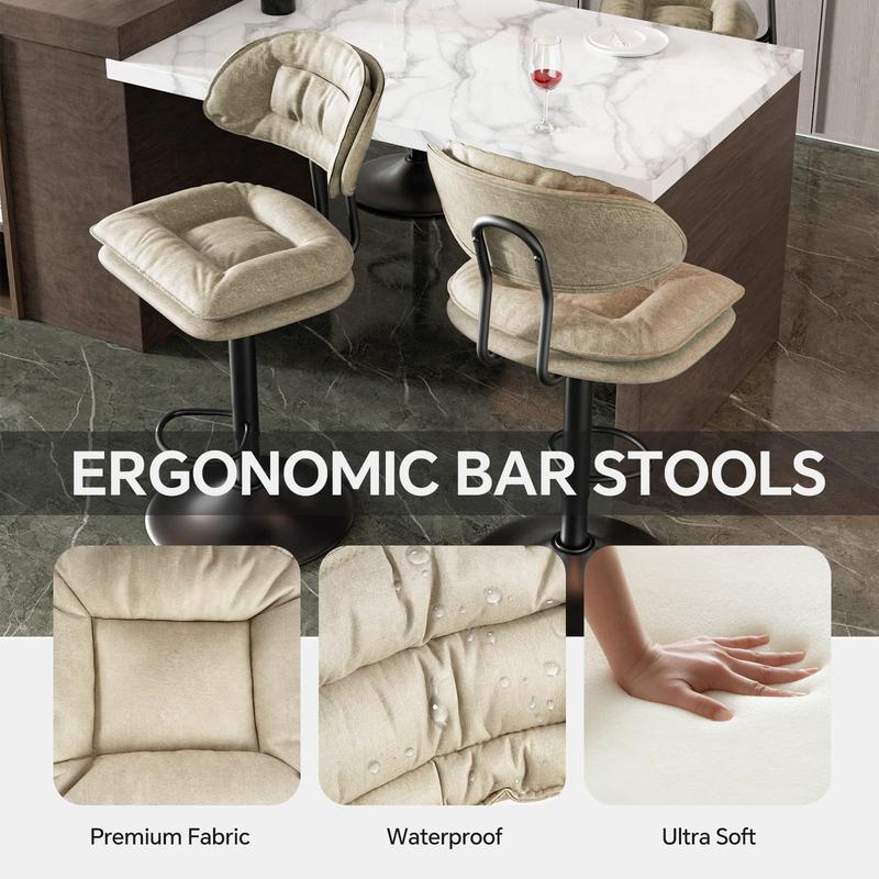 Image Description - Set of 2 Bar Stools: Modern design with ergonomic backrests. - Adjustable Swivel: 360-degree rotation for ease of use. - Kitchen Island Setting: Perfect for enhancing the aesthetic of any kitchen.
