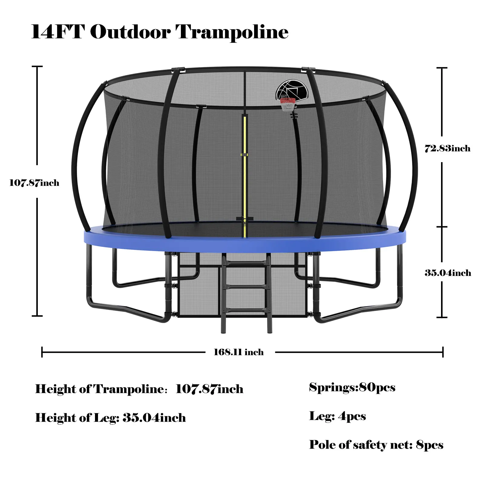 Equipped with a sturdy ground stake and a basketball set, this 14ft trampoline offers endless entertainment. The robust construction with 6 U-shaped legs ensures unparalleled stability and resilience. Perfect for kids and adults. 🏋️♀️