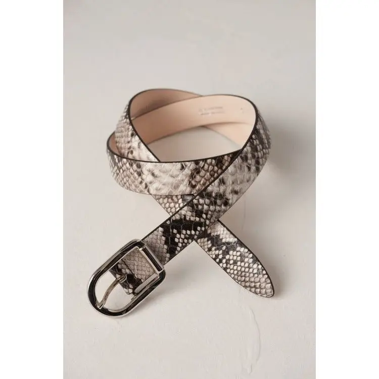 The Mija exudes a delicate yet refined aesthetic that embodies the essence of our much-loved, bestselling Hollyhock - now available in a neutral snakeskin embossed leather. Designed to strike the perfect balance between casual everyday wear and sophisticated dressy affairs, this streamlined piece is a testament to understated elegance. Handcrafted in Italy of smooth, luxurious calfskin leather, our signature suede lining and a silver-tone hardware buckle.
