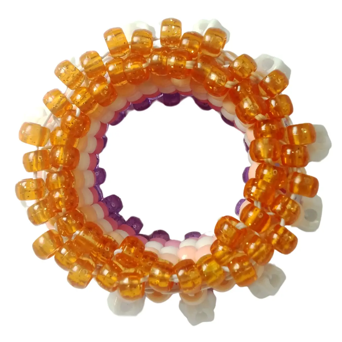 I used orange and purple sparkle pony beads to accent the outside, along with