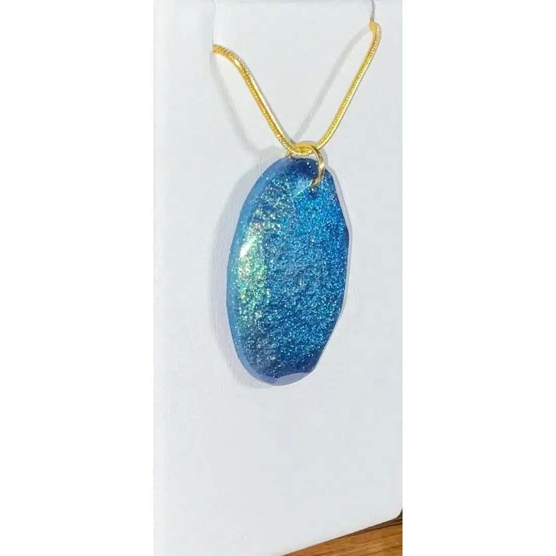 Infuse your look with a playful yet elegant twist with this captivating handmade oval-shaped color-shift necklace. Crafted with premium Chameleon Color-Shift pigment, the pendant transforms with every movement, shifting seamlessly between green and blue, while hints of gold and silver flicker through the surface. This stunning interplay of colors creates a dynamic, eye-catching effect that adds intrigue and brilliance to any outfit.