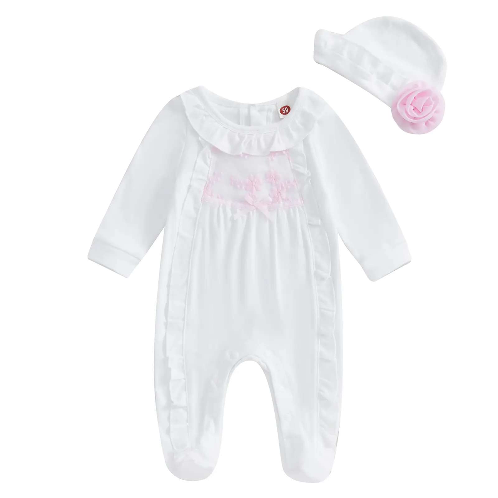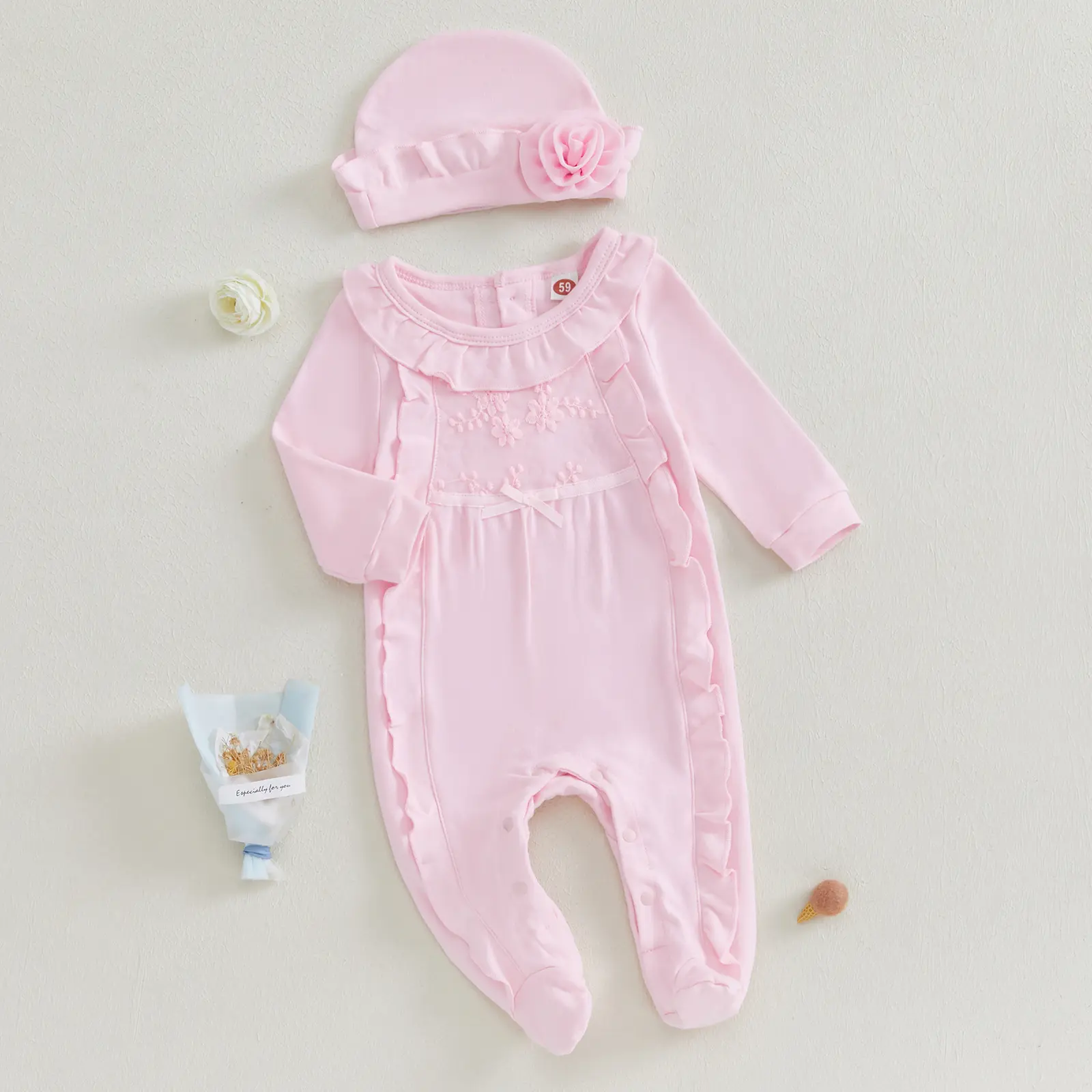 Princess Baby Girl Clothes Set, Long Sleeve 3D Print Ruffled Romper Footwear, Flower Hat, 2Pcs Outfits, Infant Clothing Suit 0-8M