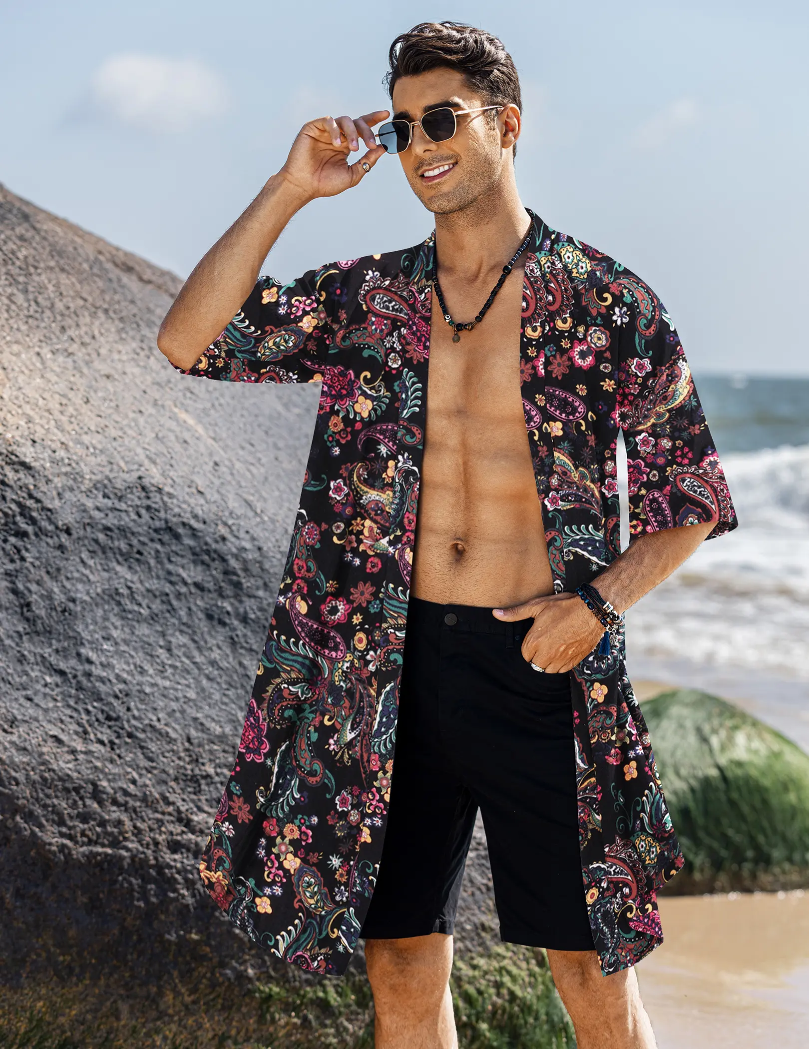 ·【Stylish Design】: Design with Irregular hem and unisex loose fit cloak with solid color creates a relaxing accent, unique sleeve floral design plus loose version, show more both trendy and casual styles.