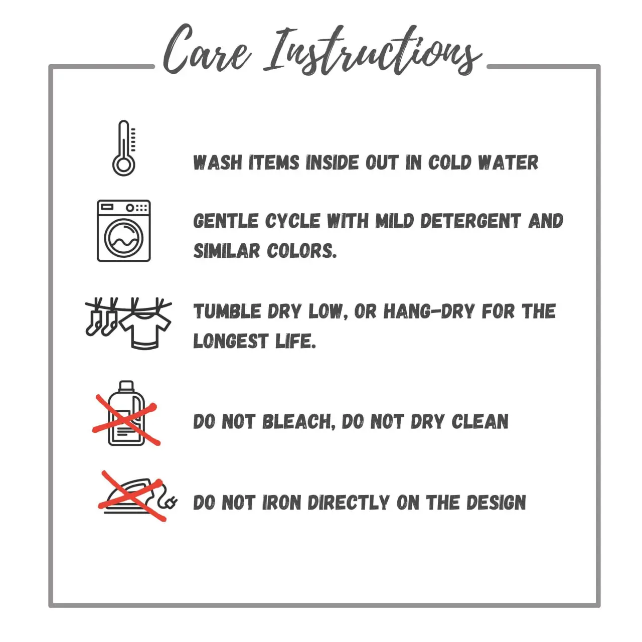 * Do not iron directly onto the design
