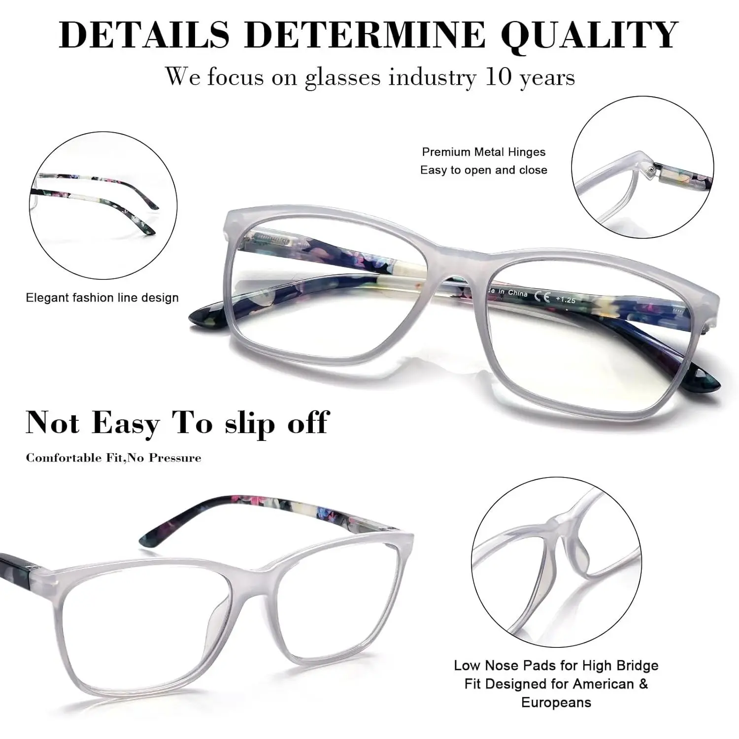 These glasses are very trendy and decent readers. I like that they are lightweight which may translate to quality but for me, I do not like a heavy frame. Super cute options too