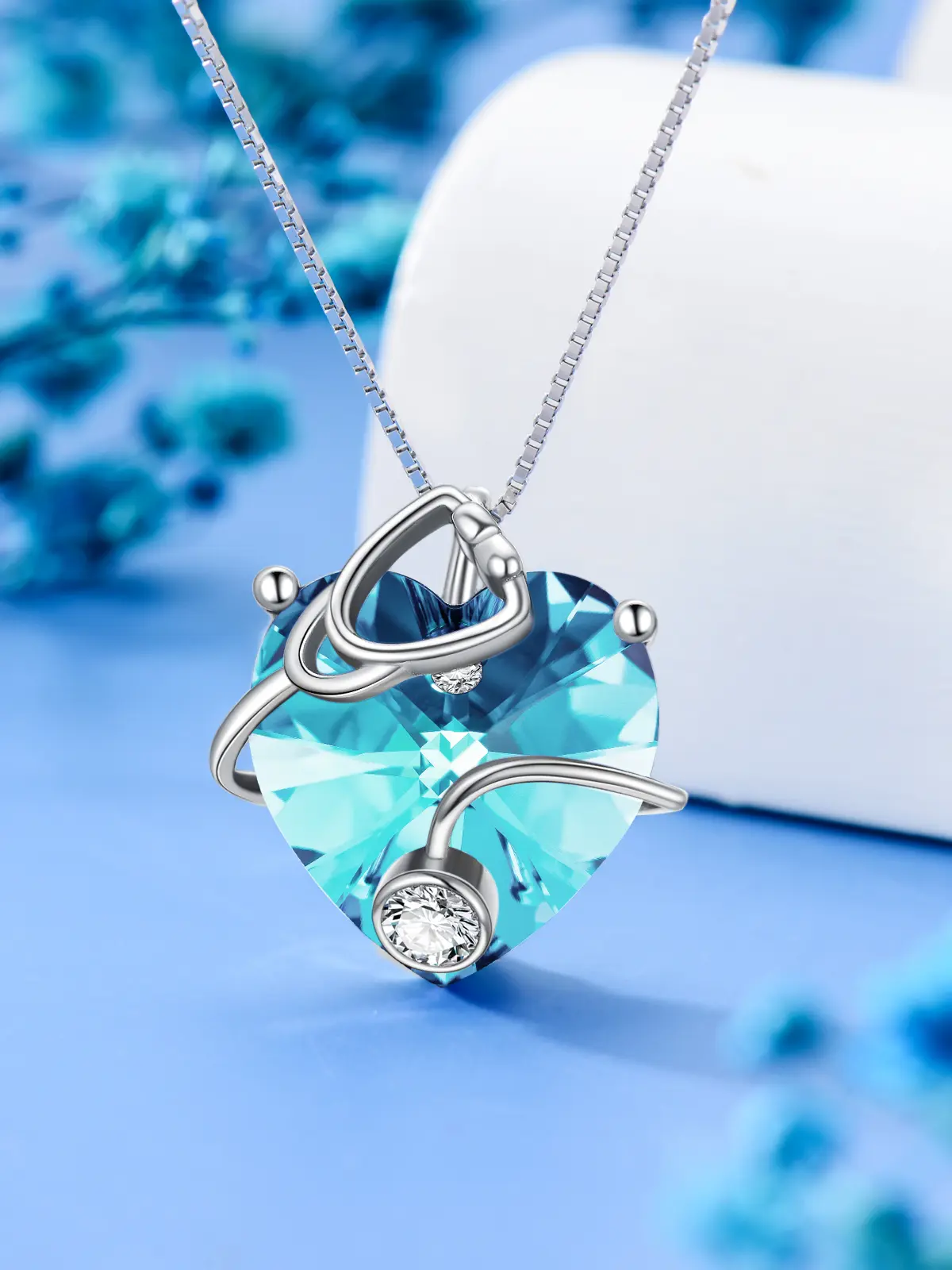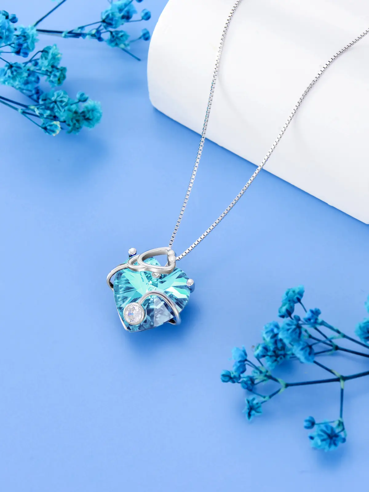 【12 Months Birthstone Jewelry】This heart-shaped birthstone necklace uses exquisite crystal from Austria as the main stone. High-quality Created Austrian crystal can capture the light well and reflect the dazzling light. Heart shaped crystal measures 0.71inch (18mm). A great birthday gifts for women.