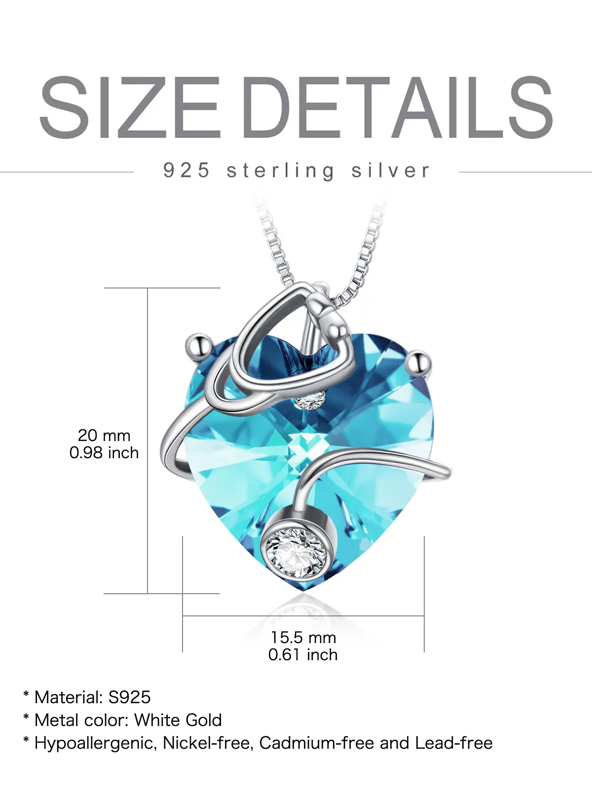 【Silver 925 Necklace for Women】The necklace is made up of sterling silver and plated with white gold and set with a heart-shaped crystal birthstone center stone and a 4mm 5A cubic zirconia; Lead-free & nickle-free, hypoallergenic and no harm to health. Excellent polishing technology makes every detail smooth and bright.