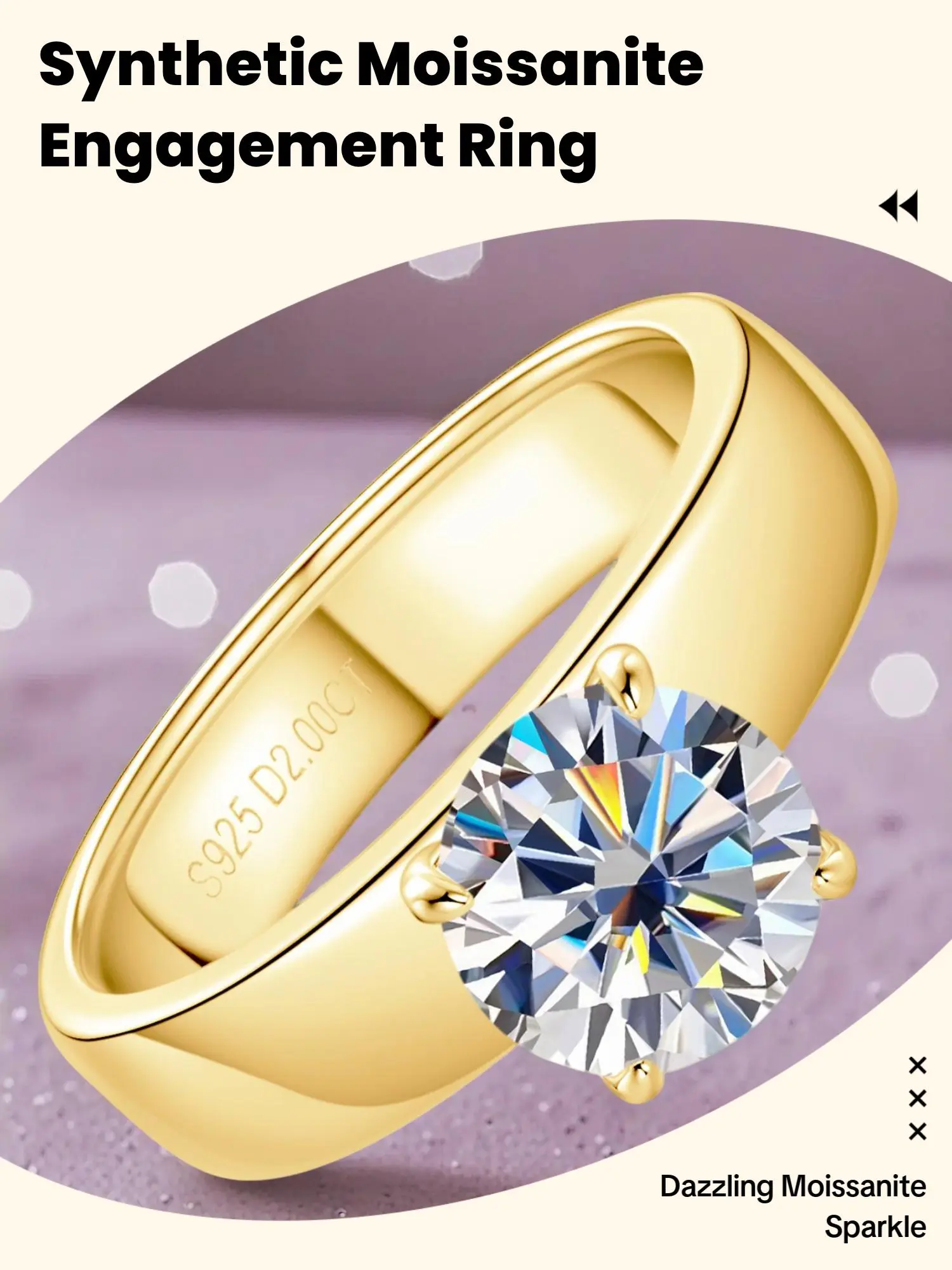 ăMoissanite Gemstoneă: Featuring a high-quality D color Moissanite gemstone, known for its brilliance and fire, enhancing its luxurious appeal.