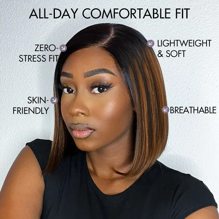 Luvme AiryFit™ Scalp Care Wigs - Brown Highlights Silky Blunt Cut Bob Snugfit Glueless Minimalist HD Lace Wig Pre-Cut Lace