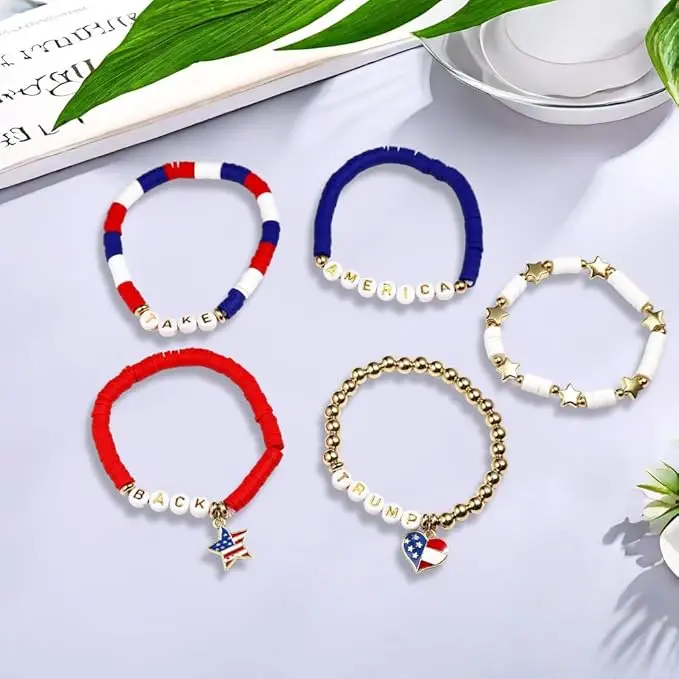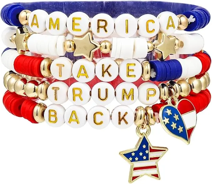 ·Product Details: Your purchase includes five stylish 2024 Trump bracelets along with one Stylish crystal brooch. These trendy and loving country beaded bracelets are perfect for showcasing your support for Donald Trump, allowing you to express your beliefs with Style and confidence. Wear them proudly to make a bold statement