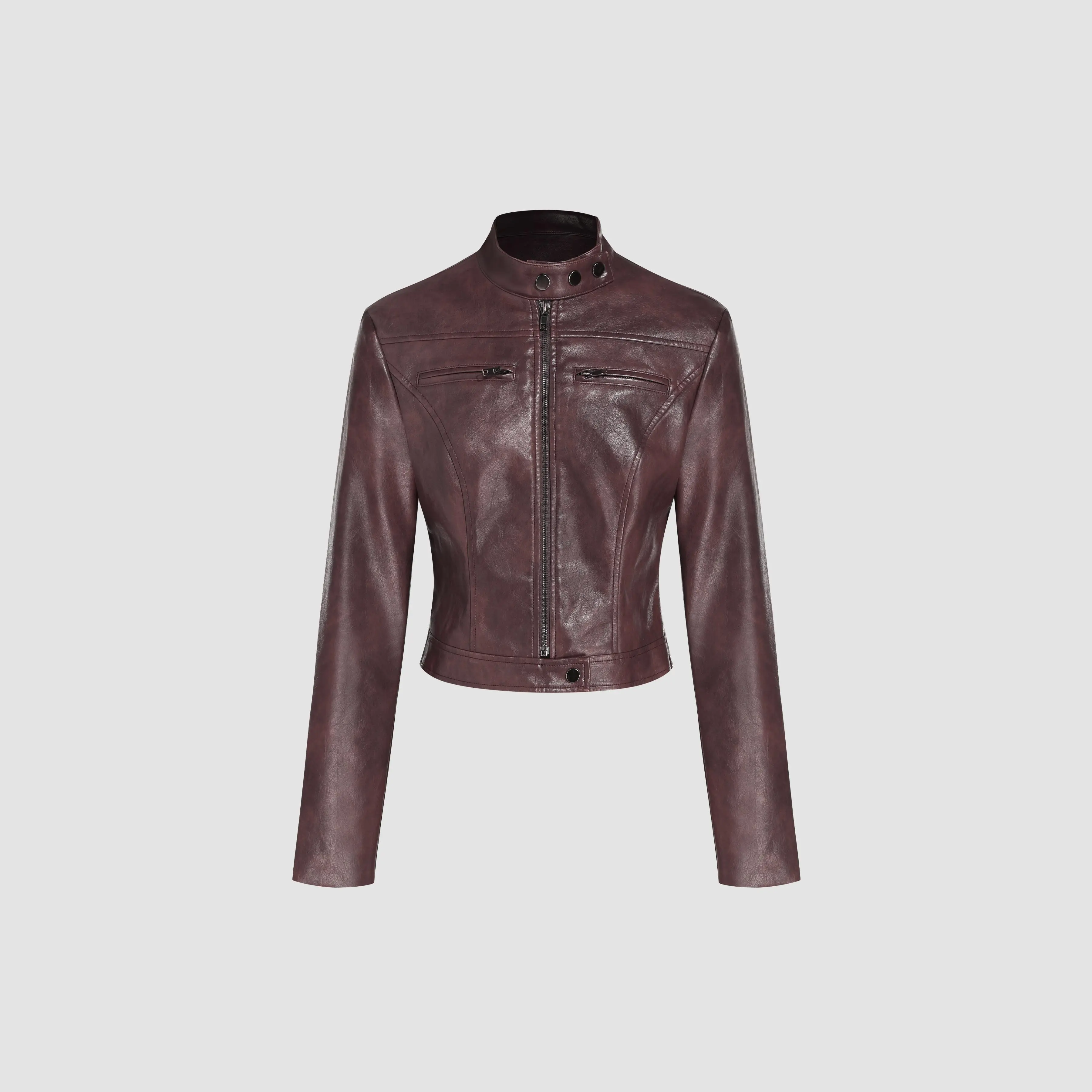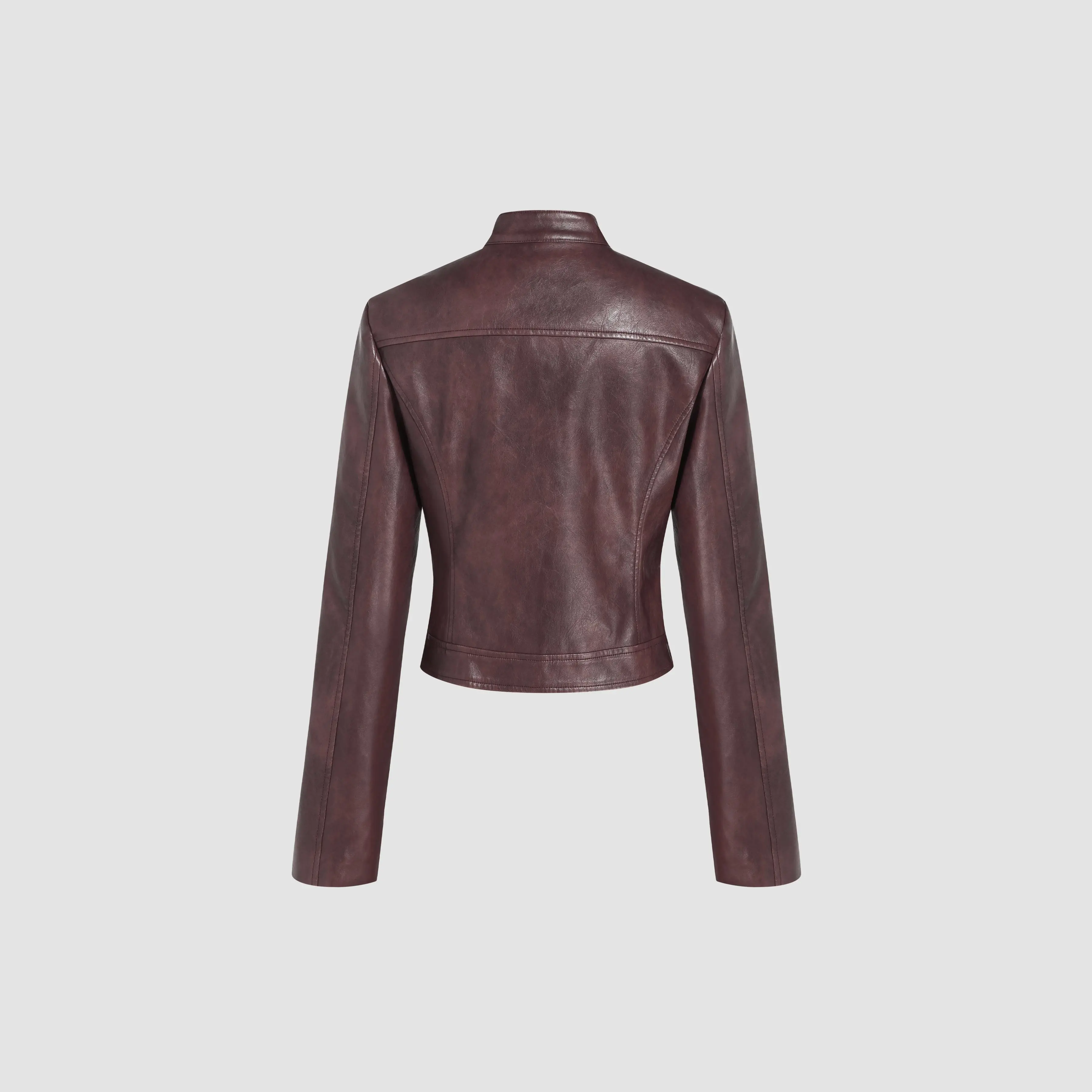 5. Cider [4 colors, size 0-26] Faux Leather Stand Collar Zipper Biker Jacket