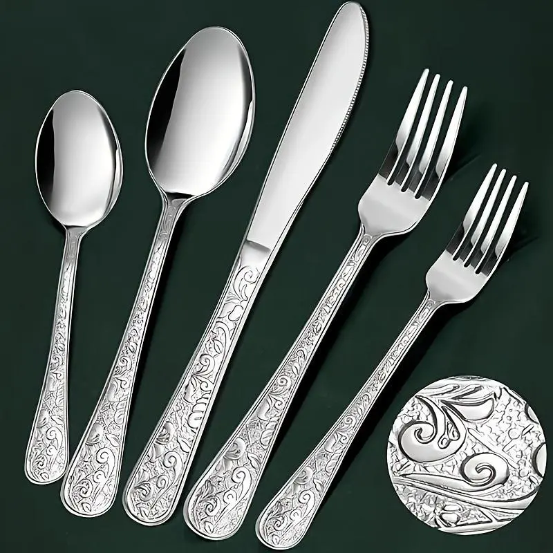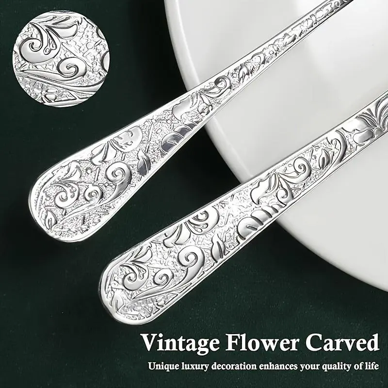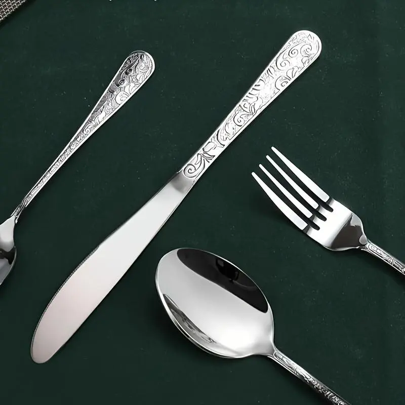 Stainless Steel Vintage Engraved Cutlery Set, 20pcs/set Including Knife & Fork & Spoon, Tableware Set for Home Kitchen Dining Room