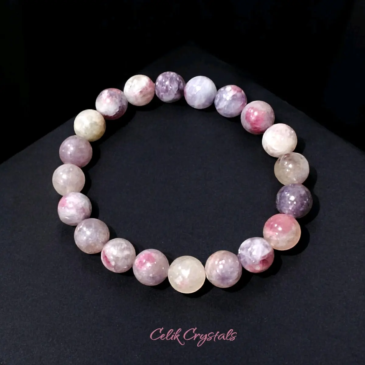 ·Pink tourmaline quartz is a unique and rare crystal that is formed when tourmaline and quartz melt and mix together under high pressure and temperature. This process hardens the crystal, making it a durable and long-lasting accessory. The bracelet is made of all-natural Pink Tourmaline Quartz Crystal, which is believed to have many benefits for the wearer.