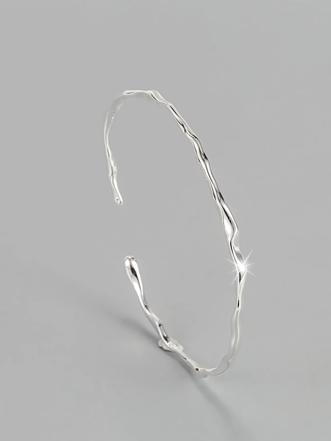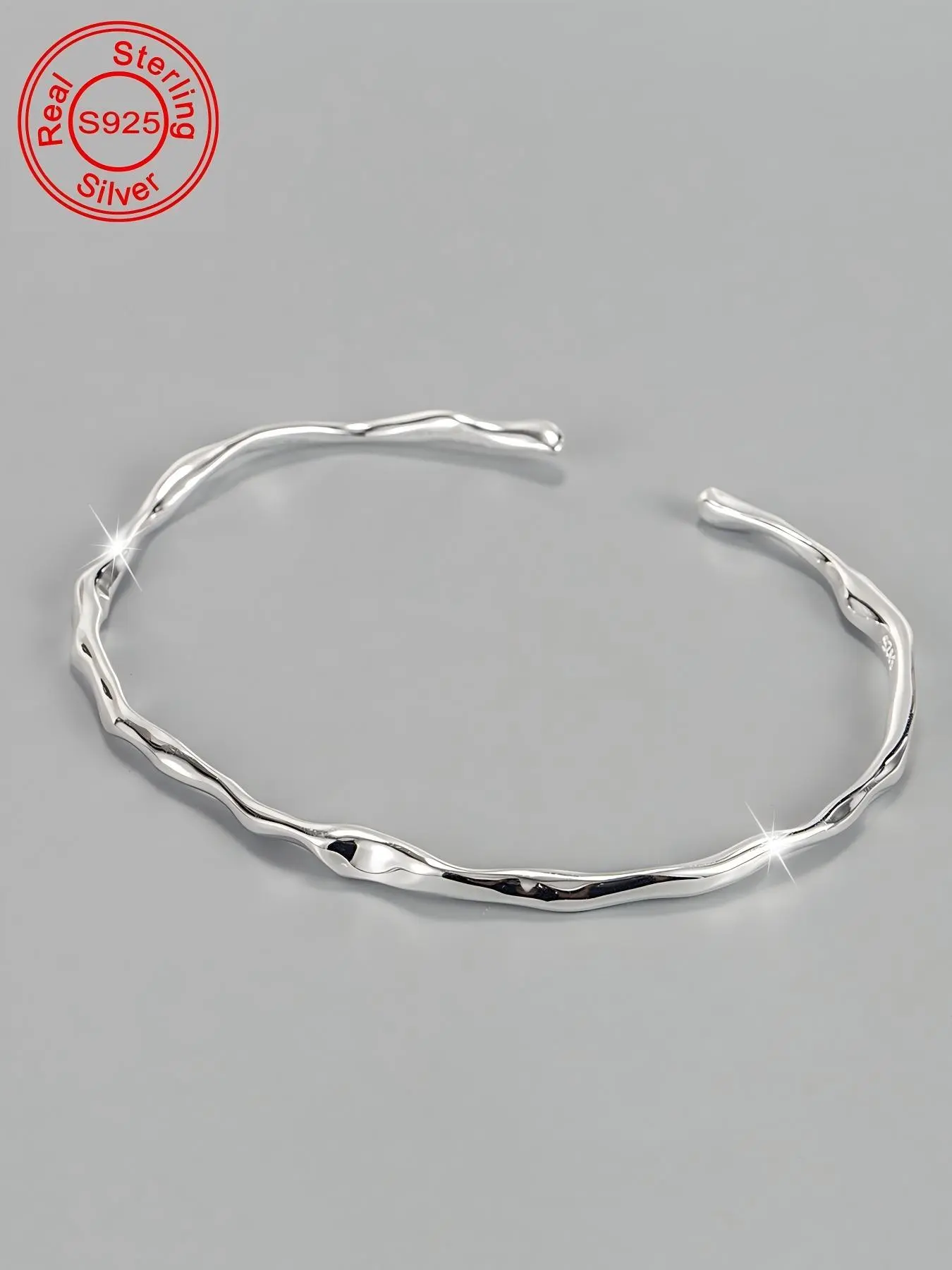 925 Sterling Silver Irregular Wave Design Bangle, Fashion Jewelry for Party, Daily Clothing Decor, Trendy All-match & Exquisite Jewelry for Birthday Gift, Valentine's Day Gifts, Metal Bracelet
