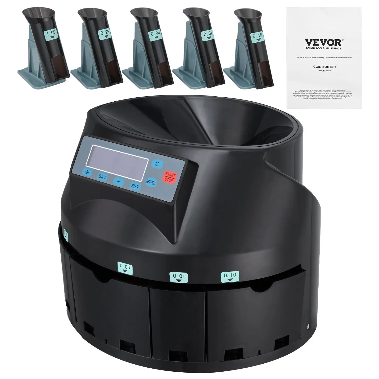 5. VEVOR USD Coin Counter & Coin Sorters with LCD Display, Coin Sorter Machine for USD Coin 1¢ 5¢ 10¢ 25¢ $1, Sorts up to 300 Coins/min, Change Counter Holds 2000 Coins Included 5 Coin Bins & 5 Tubes