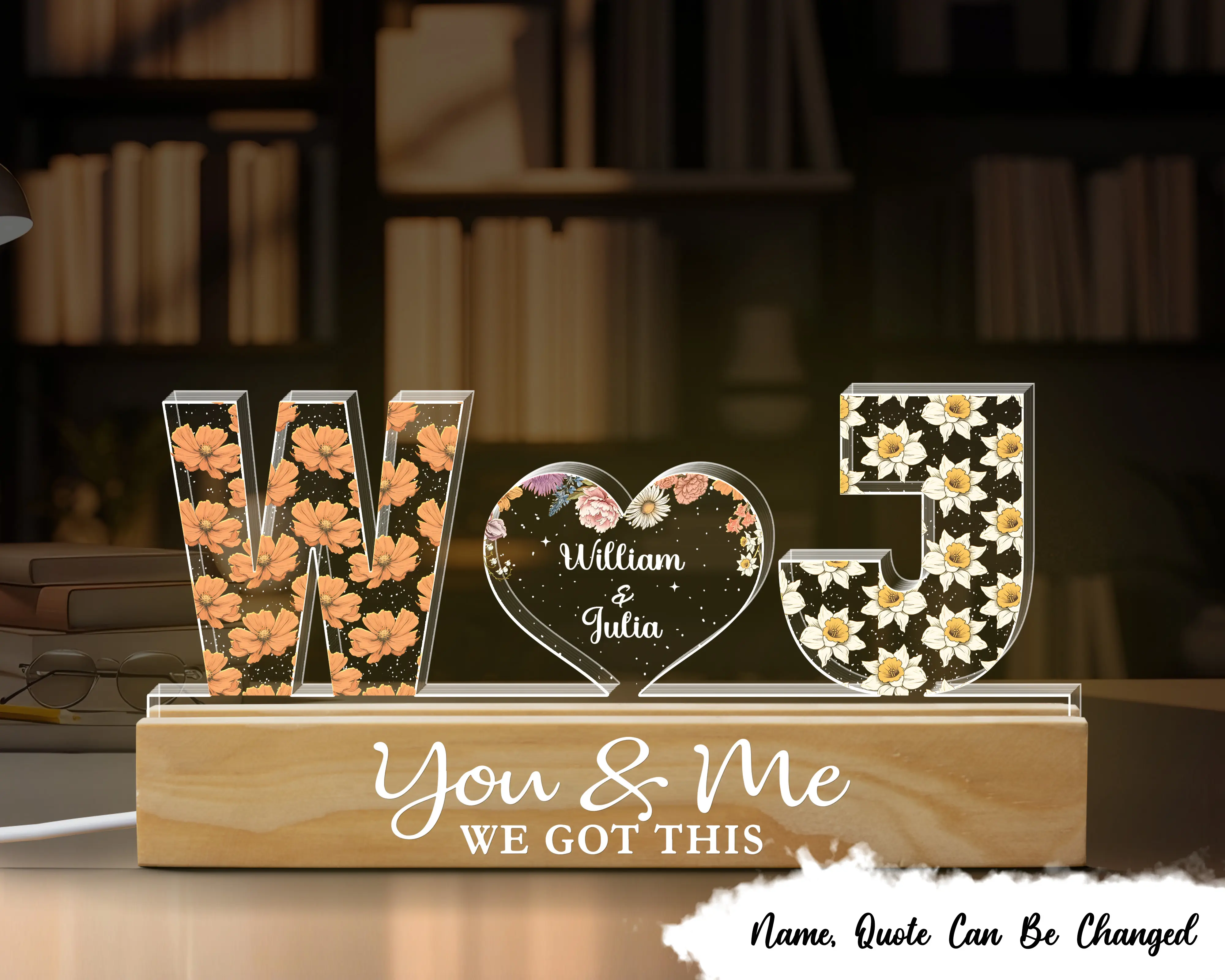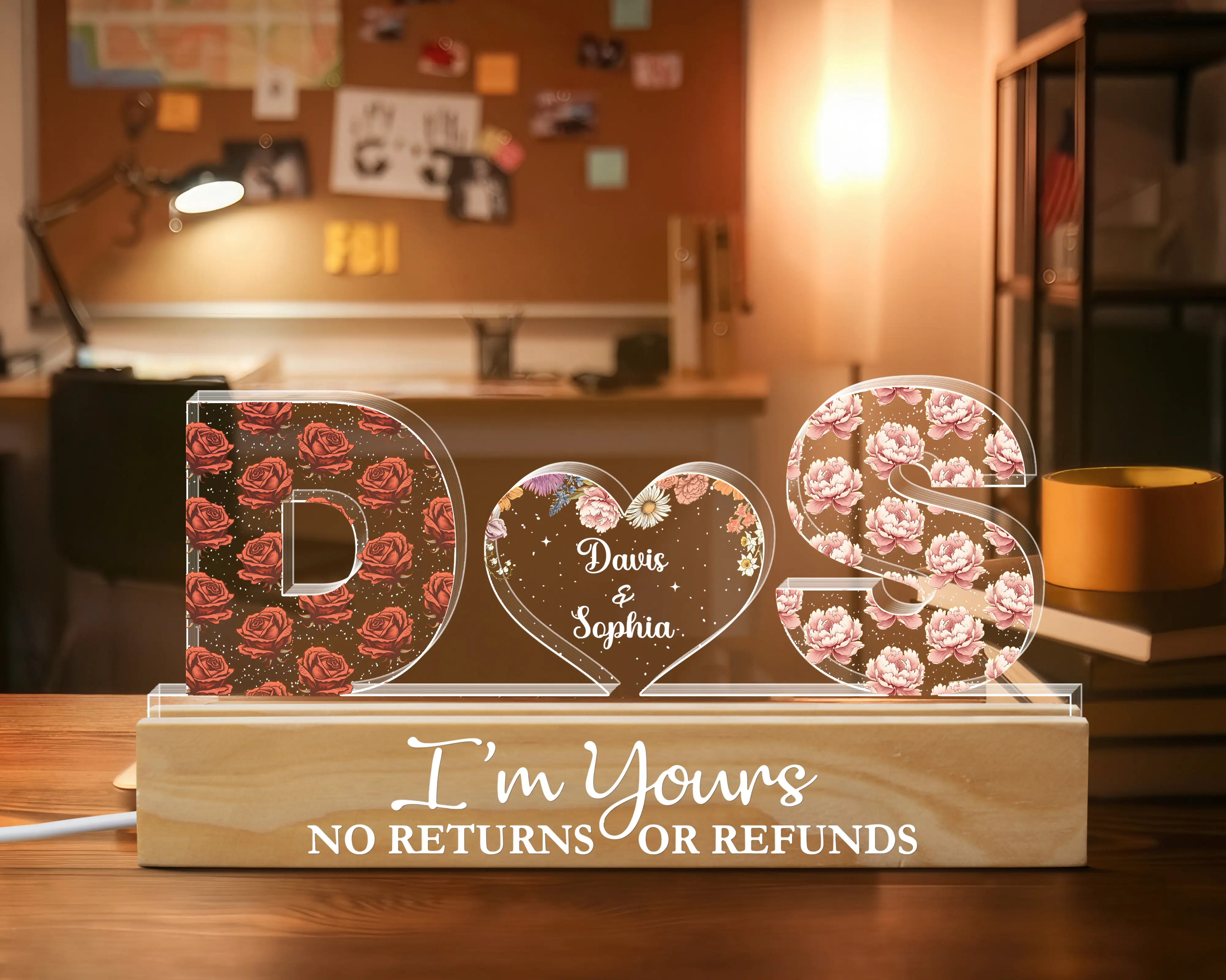 Couple Initials Birth Month Flower Anniversary Gift Personalized Acrylic Block LED Night Light, Valentine Gift For Husband Wife, Custom Night Light