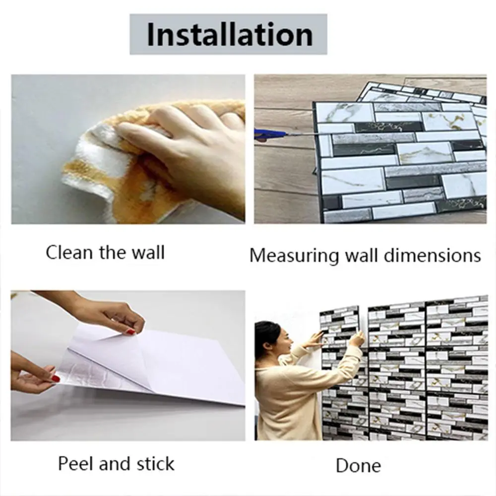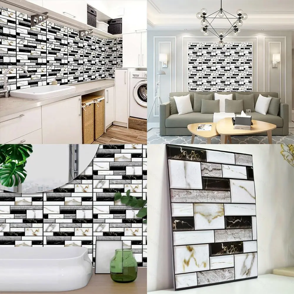 Marble Pattern 3D Wallpaper, Self-adhesive Backsplash Stick Tiles, Waterproof Wall Tiles Panel, Living Room, Bathroom, Kitchen